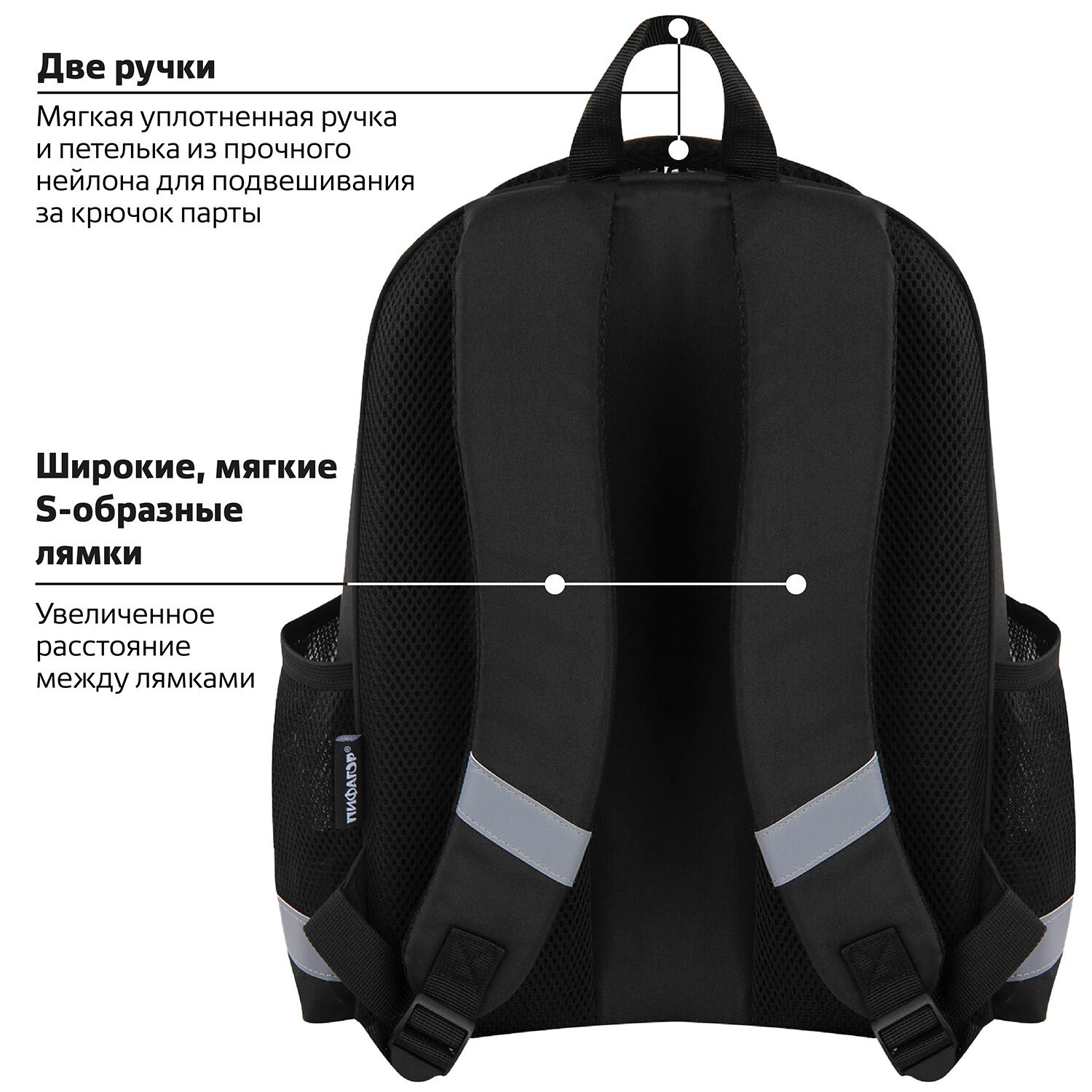 Светоотражающие элементы ранца расположены спереди, на торцах и на лямках. Они необходимы для безопасности пользователя в темное время суток.