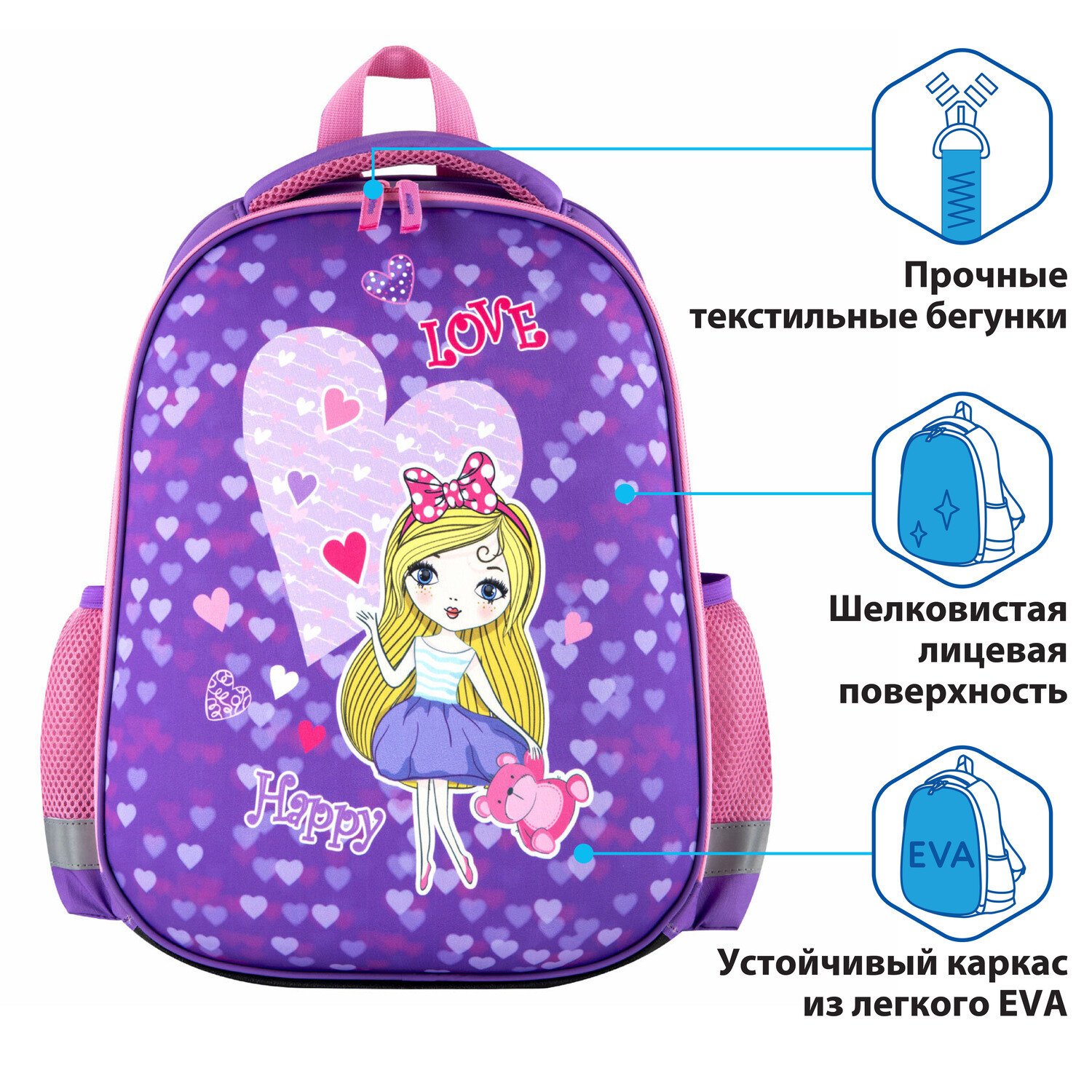 Ранец ПИФАГОР EVA BASIC, 1 отделение, "Fancy girl", 39х30х16 см, 270690