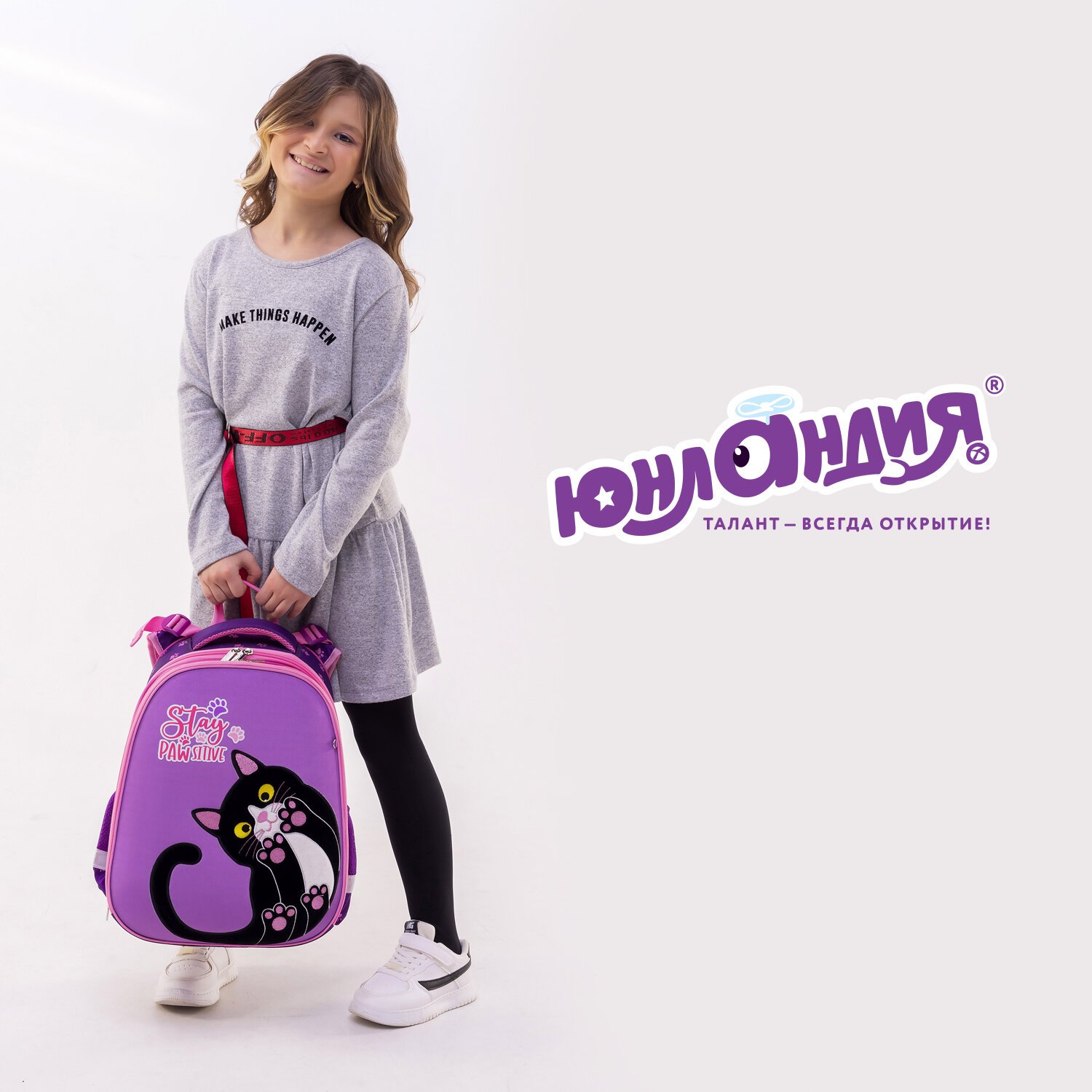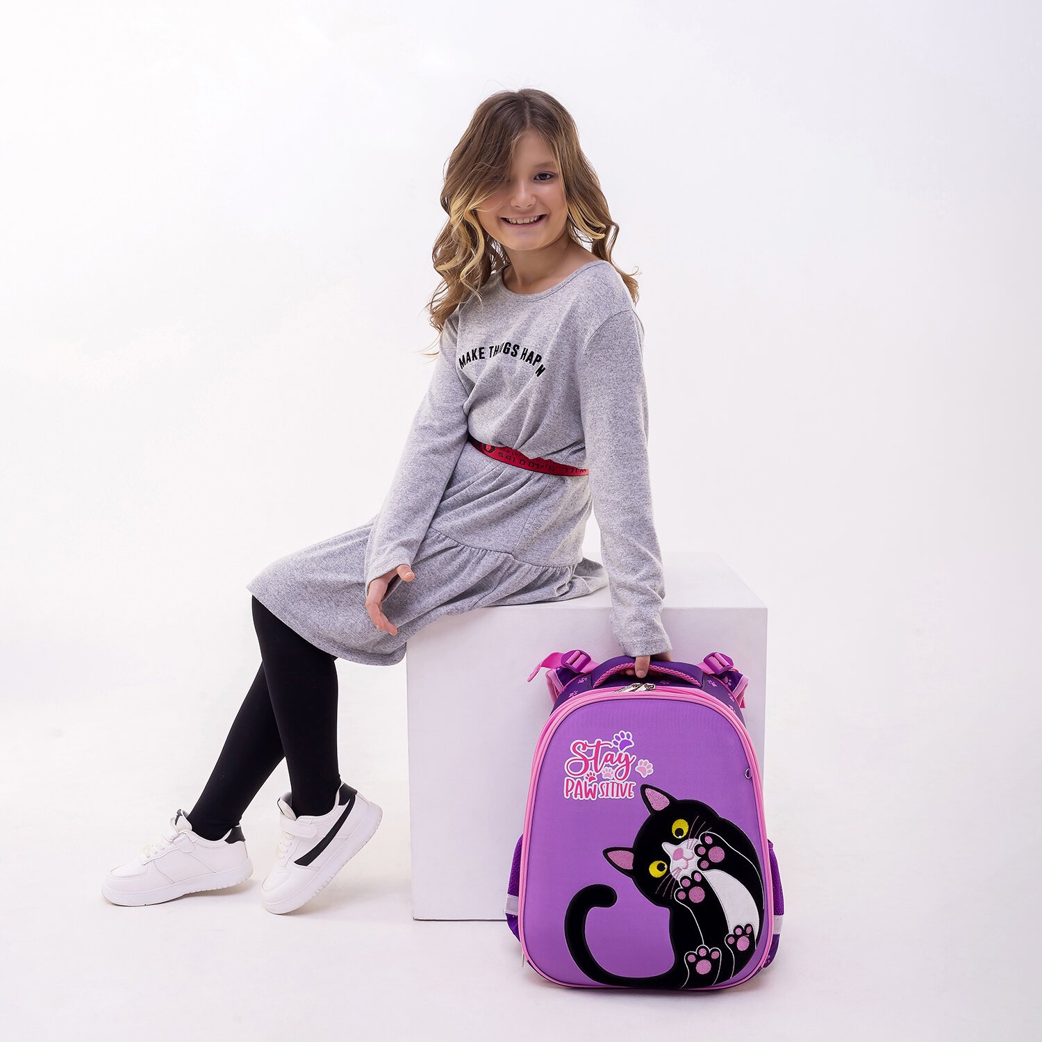 Изготовлен из легкого формоустойчивого, экологичного материала EVA, с качественной и яркой печатью, различными эффектами. Дизайн передней панели дополнен мягкой и приятной на ощупь плюшевой аппликацией с декоративной вышивкой.