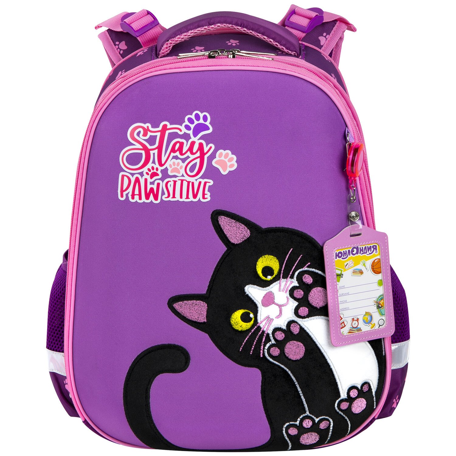 Ранец BRAUBERG SHINY, 2 отделения, с брелоком, "Glad to be cat", 38х28х14 см, 271382