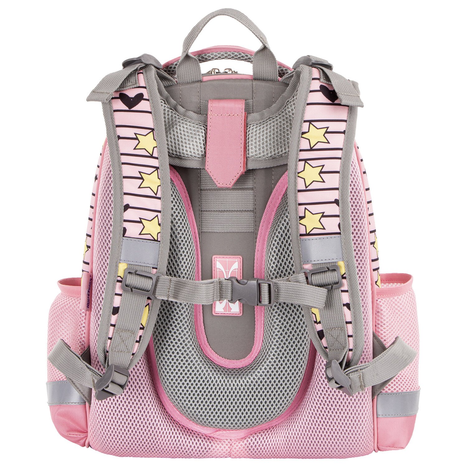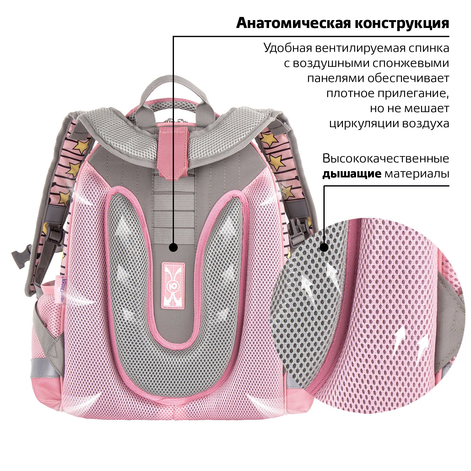 Удобная мягкая вентилируемая спинка с воздушными спонжевыми панелями разработана с учетом анатомических особенностей детей младшего школьного возраста. При правильной регулировке ранец будет практически не ощущаться на плечах и не будет доставлять дискомфорт при носке. В процессе эксплуатации равномерное распределение нагрузки позволит сохранить правильную осанку!