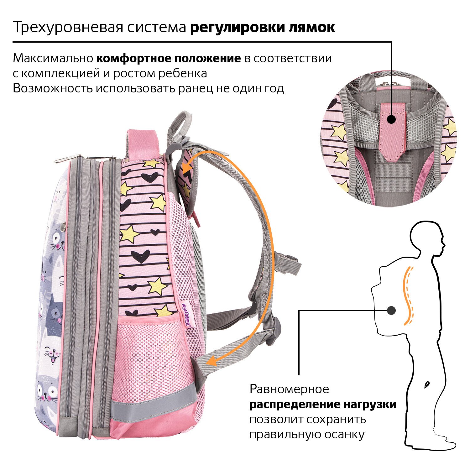 Ранец ЮНЛАНДИЯ EXTRA, с дополнительным объемом, "Gray kittens", 38x29x18 см, 227843