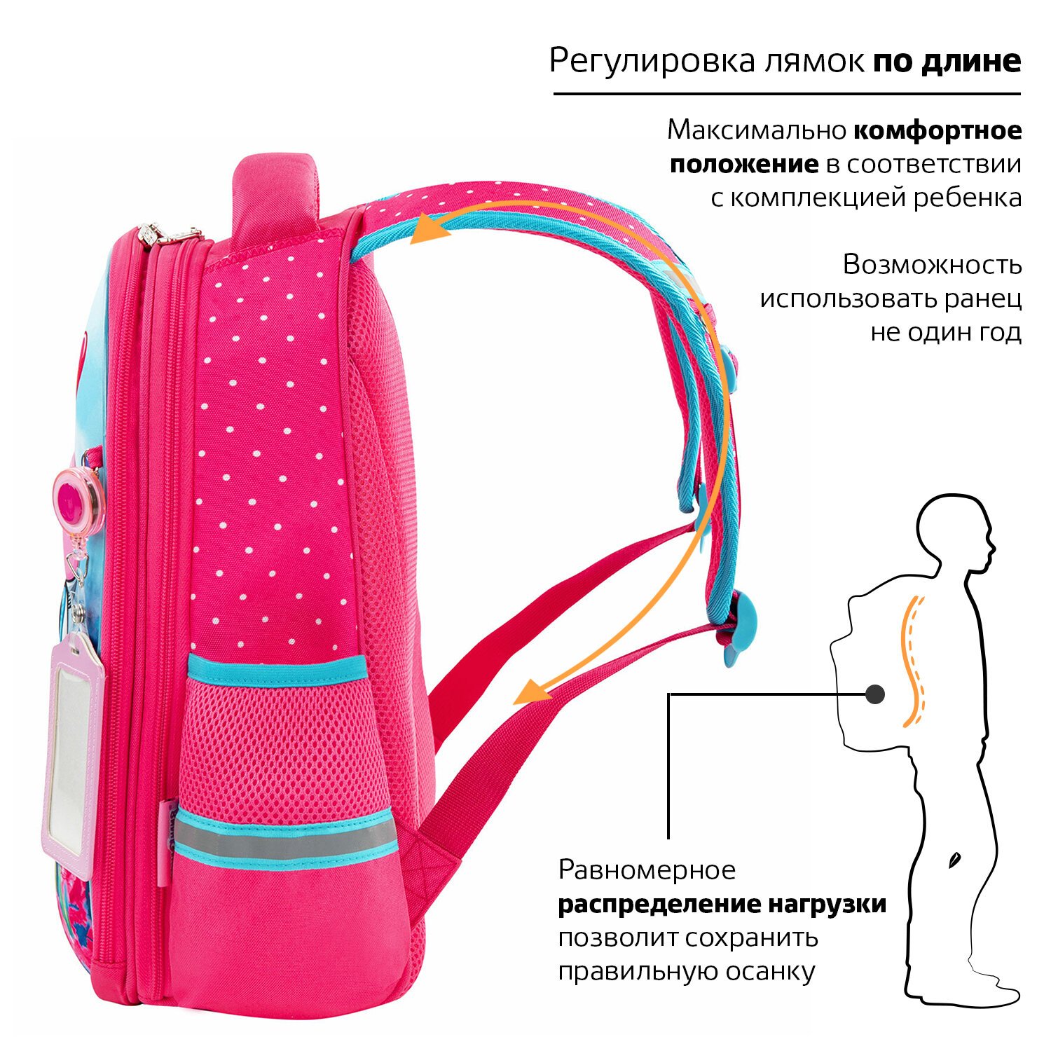 Регулируемые по длине S-образные лямки можно оптимально подогнать под комплекцию ребенка, чтобы ранец носился с комфортом, несмотря на зачастую избыточный вес содержимого: учебников, тетрадей, канцтоваров. Регулируемый в двух направлениях нагрудный ремешок с фиксатором-защелкой поможет правильно распределить нагрузку. При правильной регулировке ранец будет практически не ощущаться на плечах и не будет доставлять дискомфорт при носке.