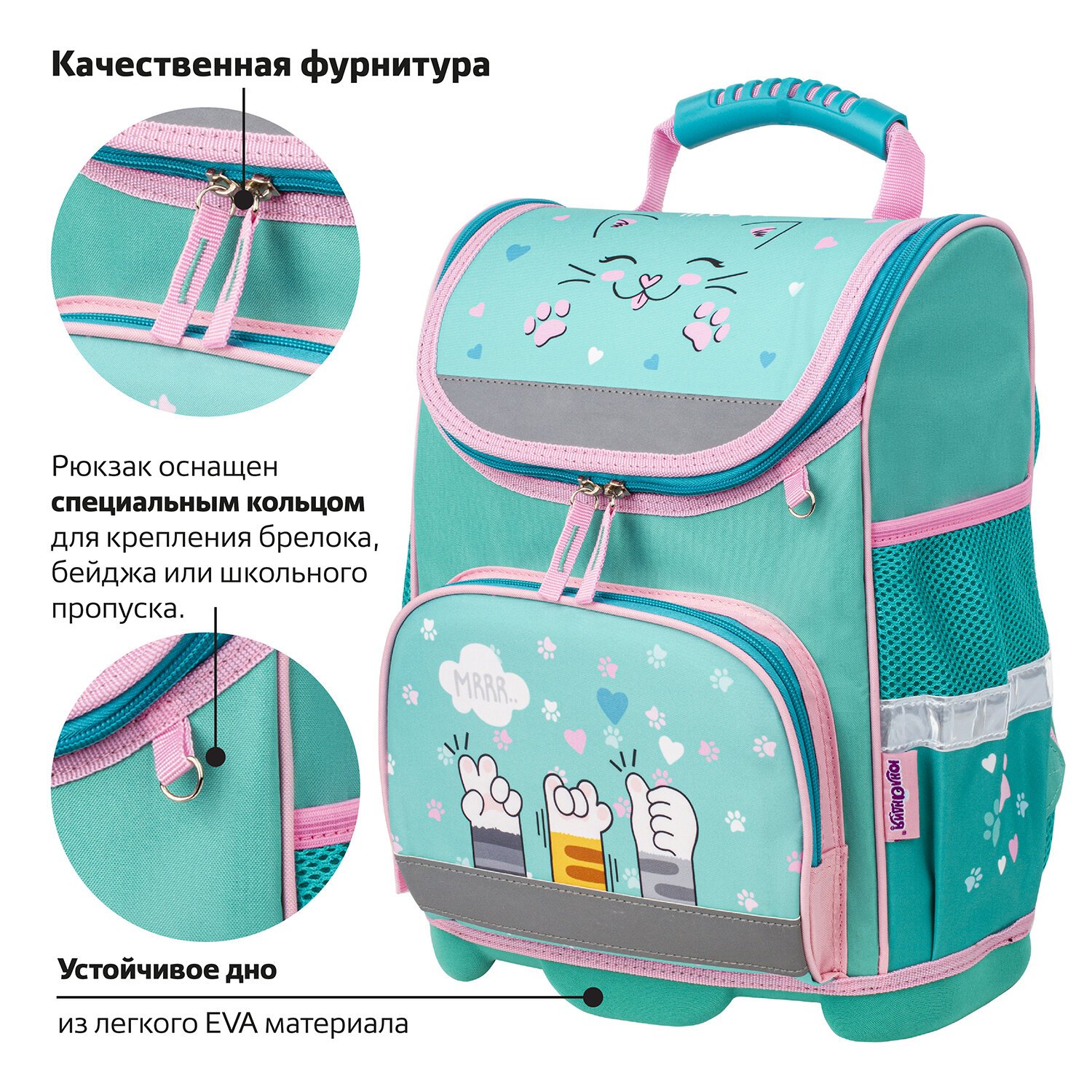 Рюкзак имеет специальное кольцо для крепления брелока, бейджика или школьного пропуска.