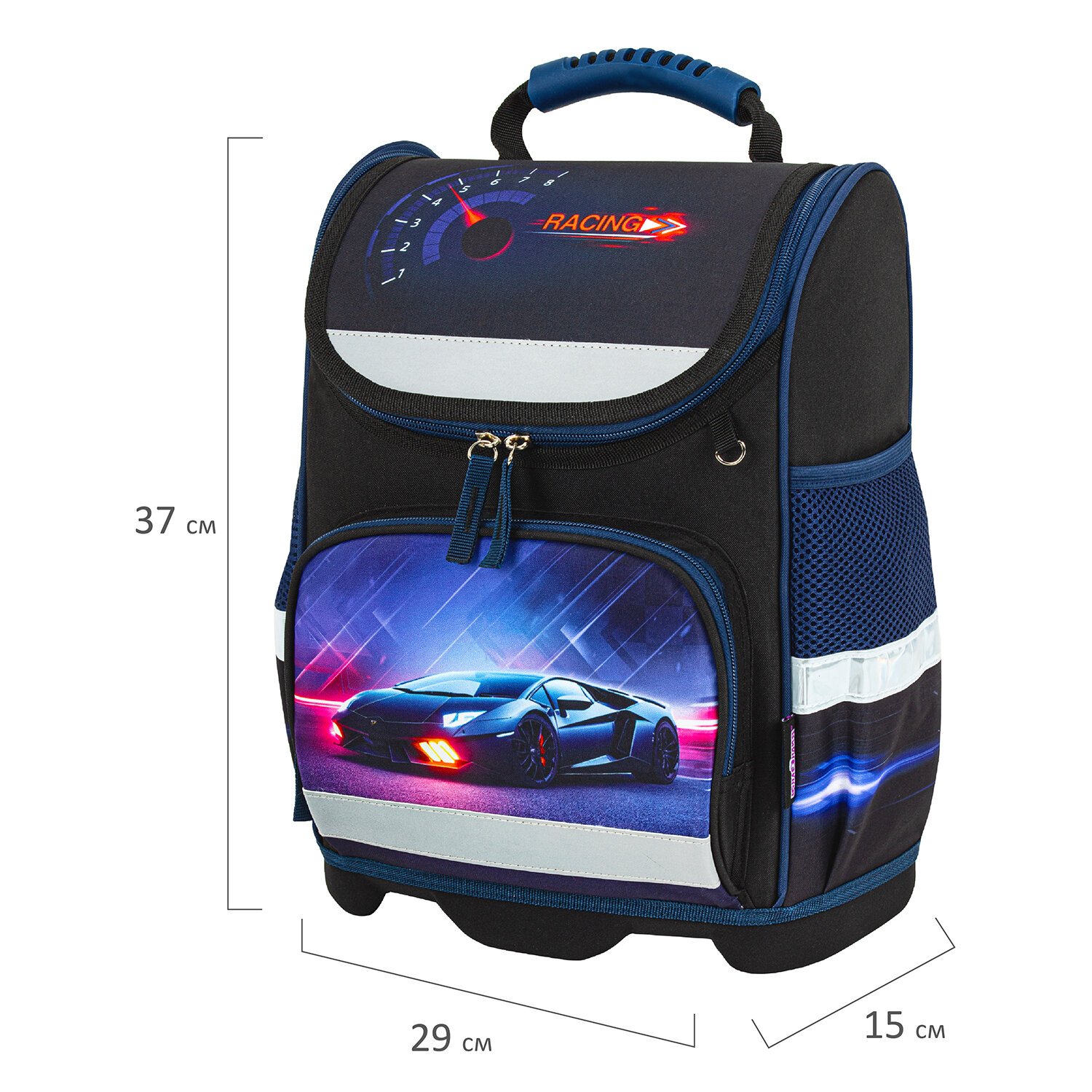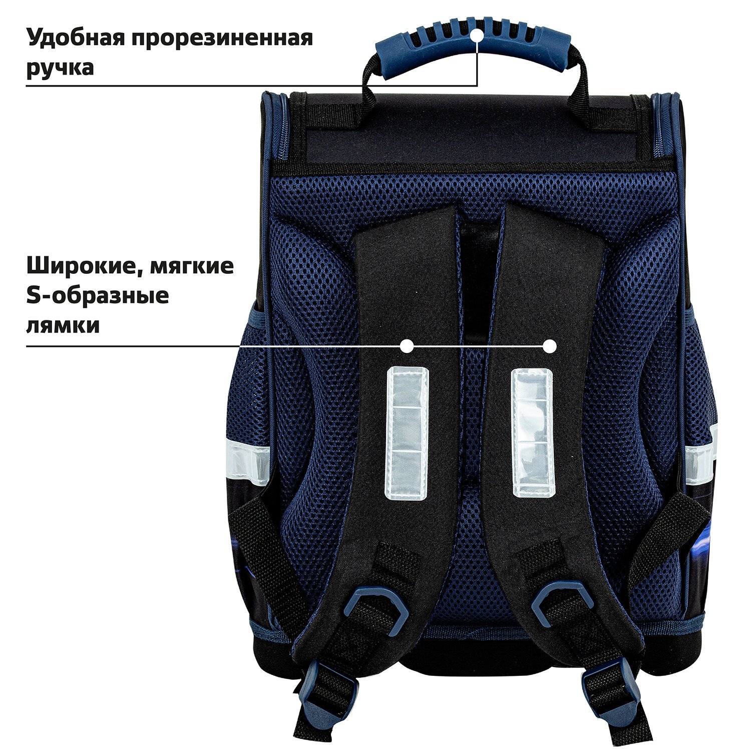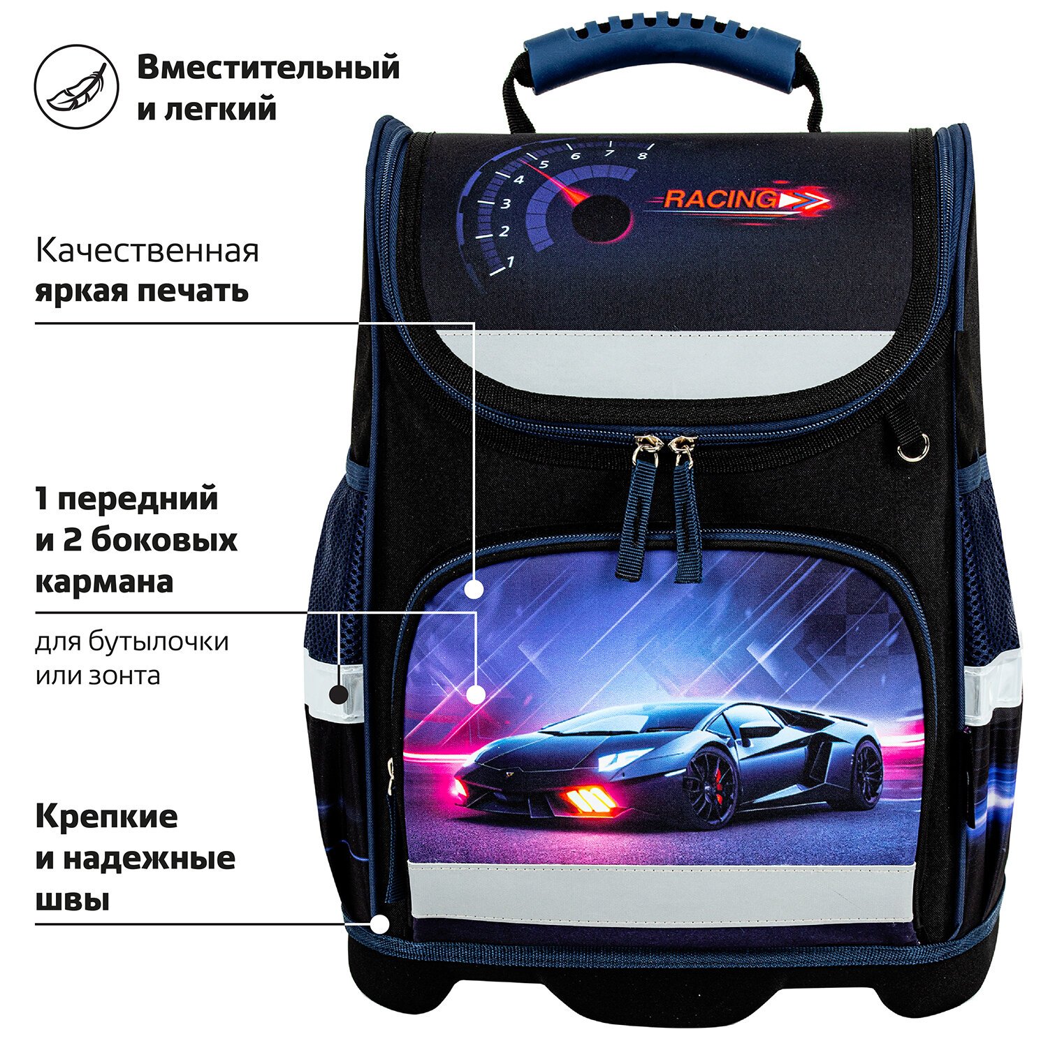 Ранец упакован в плотный ПЭТ-пакет, который сохранит качество и товарный вид изделия при хранении и транспортировке.