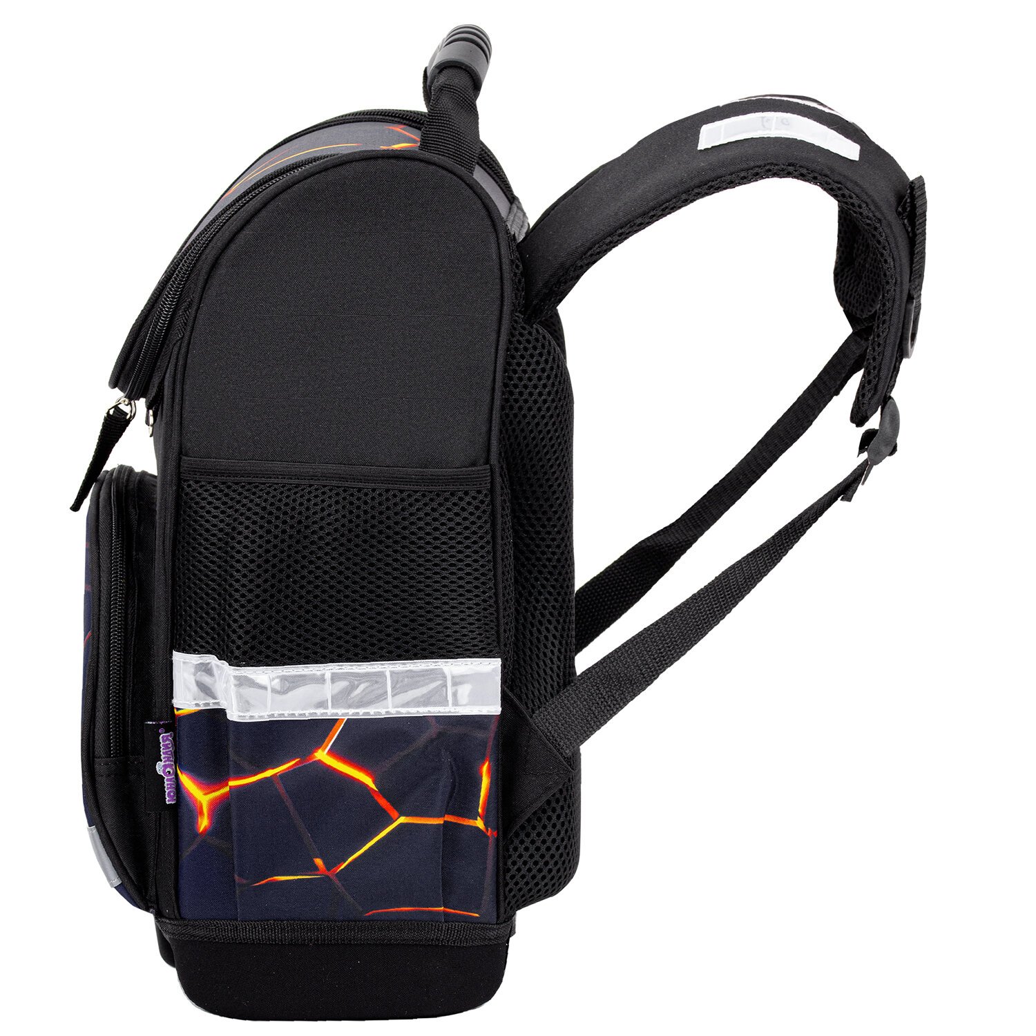 Жесткокаркасный ранец выполнен из прочного, износостойкого полиэстера. Ранец состоит из одного просторного отделения, одного переднего и двух боковых карманов.