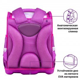 Уплотненное рельефное дно из эргономичного материала EVA сохраняет устойчивость, жесткость и функциональность ранца, при этом не утяжеляя его. Рельефная структура материала позволяет сохранить устойчивость даже на неровной поверхности.