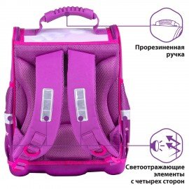 Оптимальный размер ранца, мягкие регулируемые по длине лямки и вес 850 грамм полностью удовлетворяют потребности ученика начальной школы. Светоотражающие элементы со всех сторон ранца обеспечивают безопасность на дороге в темное время суток.
