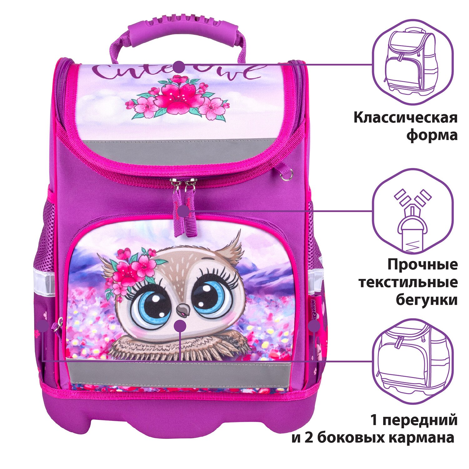 Ранец ЮНЛАНДИЯ WISE для начальной школы, "Cute owl", 37x29х15 см, 270586