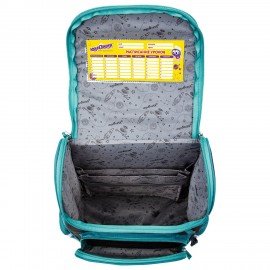 Внутренние разделители для книг и тетрадей в основном отделении позволяют правильно организовать пространство в ранце. Еще одна удобная опция - вкладыш для заполнения расписания уроков и контактной информации школьника на внутренней стенке крышки ранца.