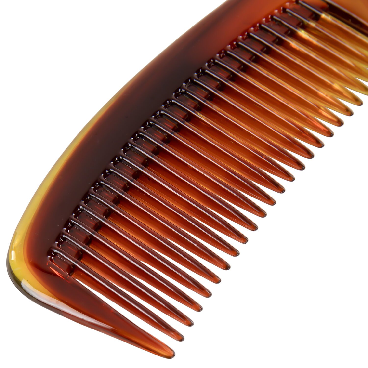 Гребень черепаховой расцветки из износостойкого полистирола. Особая прочность материала позволяет легко проходить сквозь самые густые и непослушные волосы без риска поломки зубцов. Анатомическая ручка обеспечивает уверенный хват и точный контроль, необходимый для создания проборов, сложного плетения или отделения прядей. Надежный инструмент для безупречной укладки. Гребень упакован в индивидуальную упаковку с европодвесом.