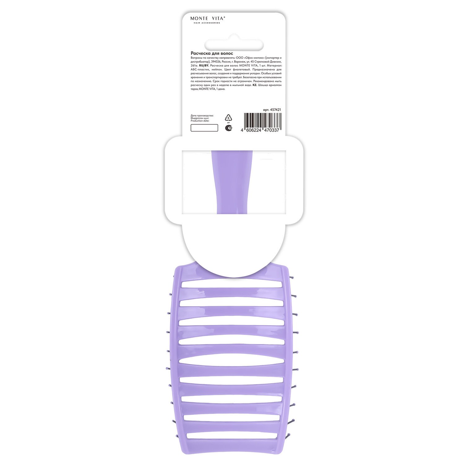 Расческа для волос массажная, широкая, 24,5х8,5 см, фиолетовая MONTE VITA, 457419