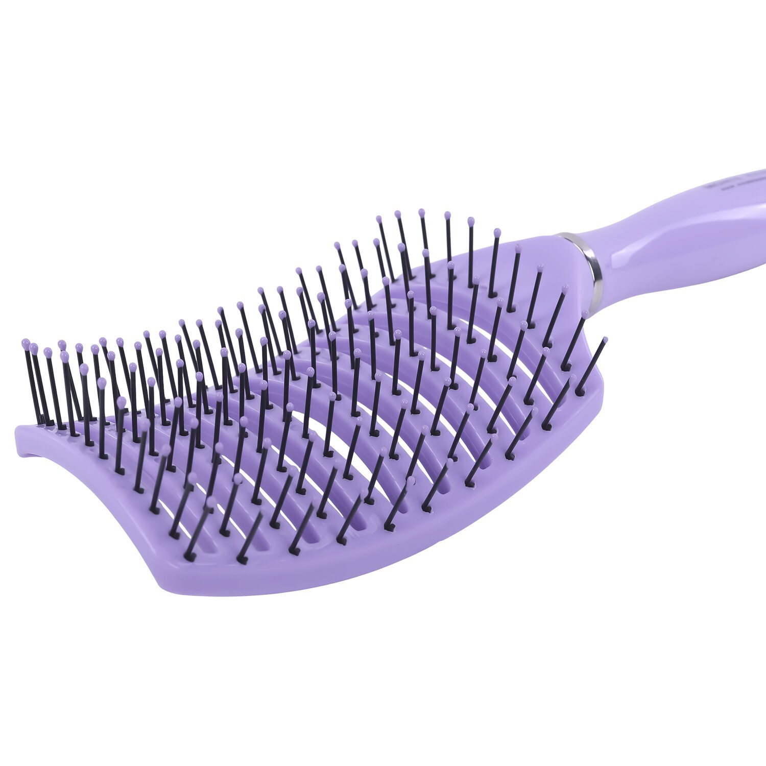 Объемная массажная расческа с уникальным дизайном. Вентиляционные отверстия и специальное расположение зубчиков обеспечивают анатомическое повторение формы головы. Вентиляционные отверстия оптимизируют поток горячего воздуха, ускоряя сушку и защищая волосы от перегрева. Упругие нейлоновые зубчики нежно массируют кожу и эффективно приподнимают волосы у корней, создавая мгновенный объем без утяжеления. Регулярное использование улучшает тонус кожи головы и способствует густому, здоровому росту волос.