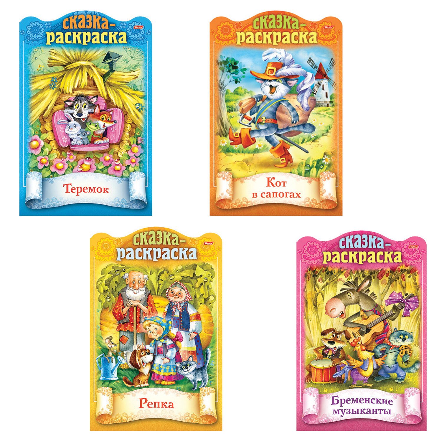 Раскраски детские "Сказки детям", КОМПЛЕКТ 4 шт., А4, 16 стр., HATBER