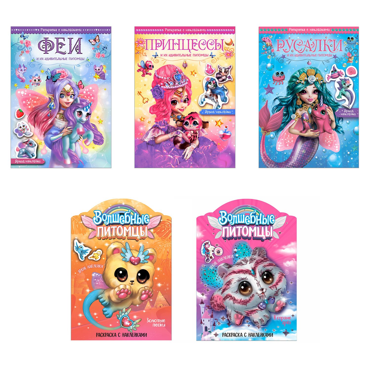 Раскраска с наклейками АССОРТИ "Волшебные питомцы", 29,5х21 см, 3+, МС