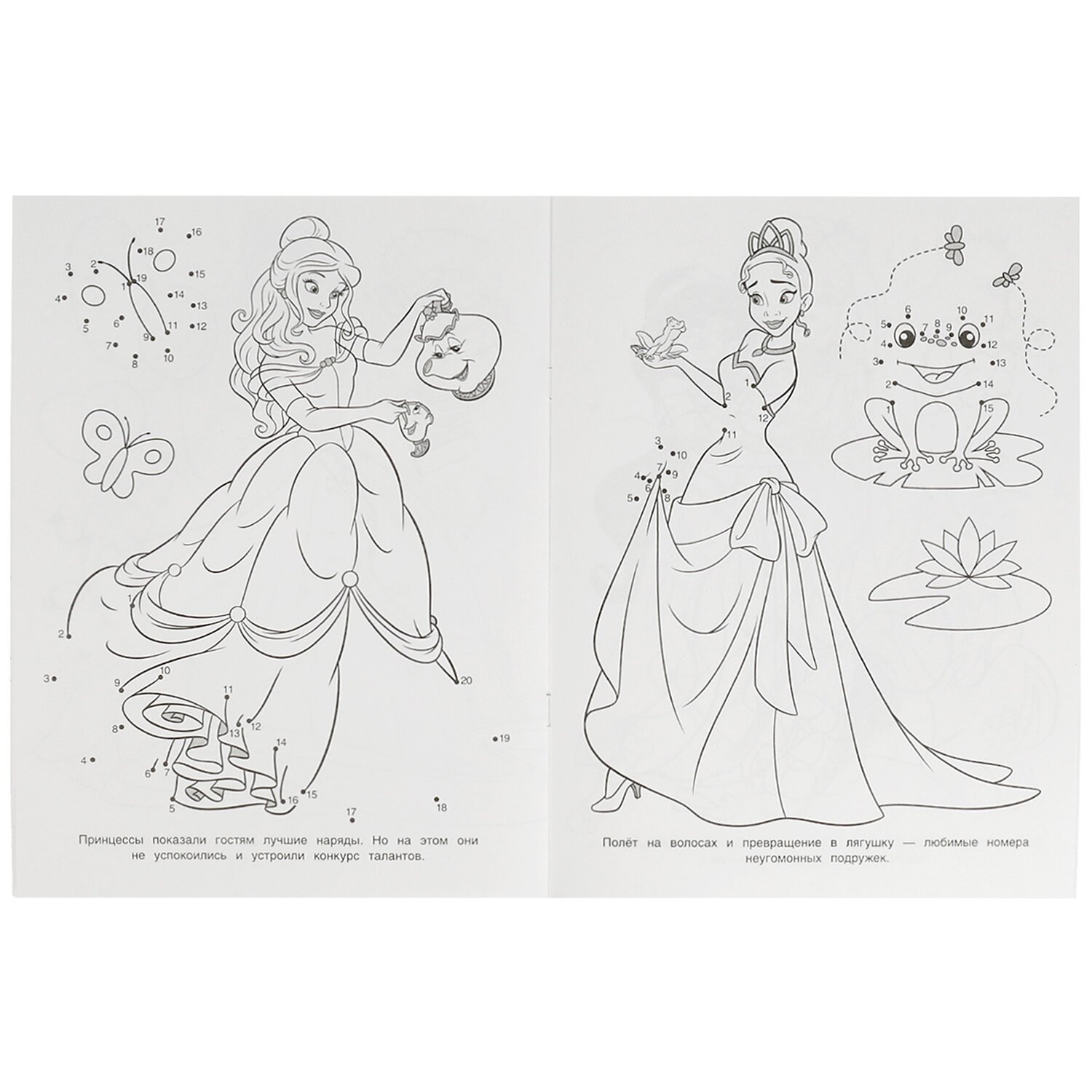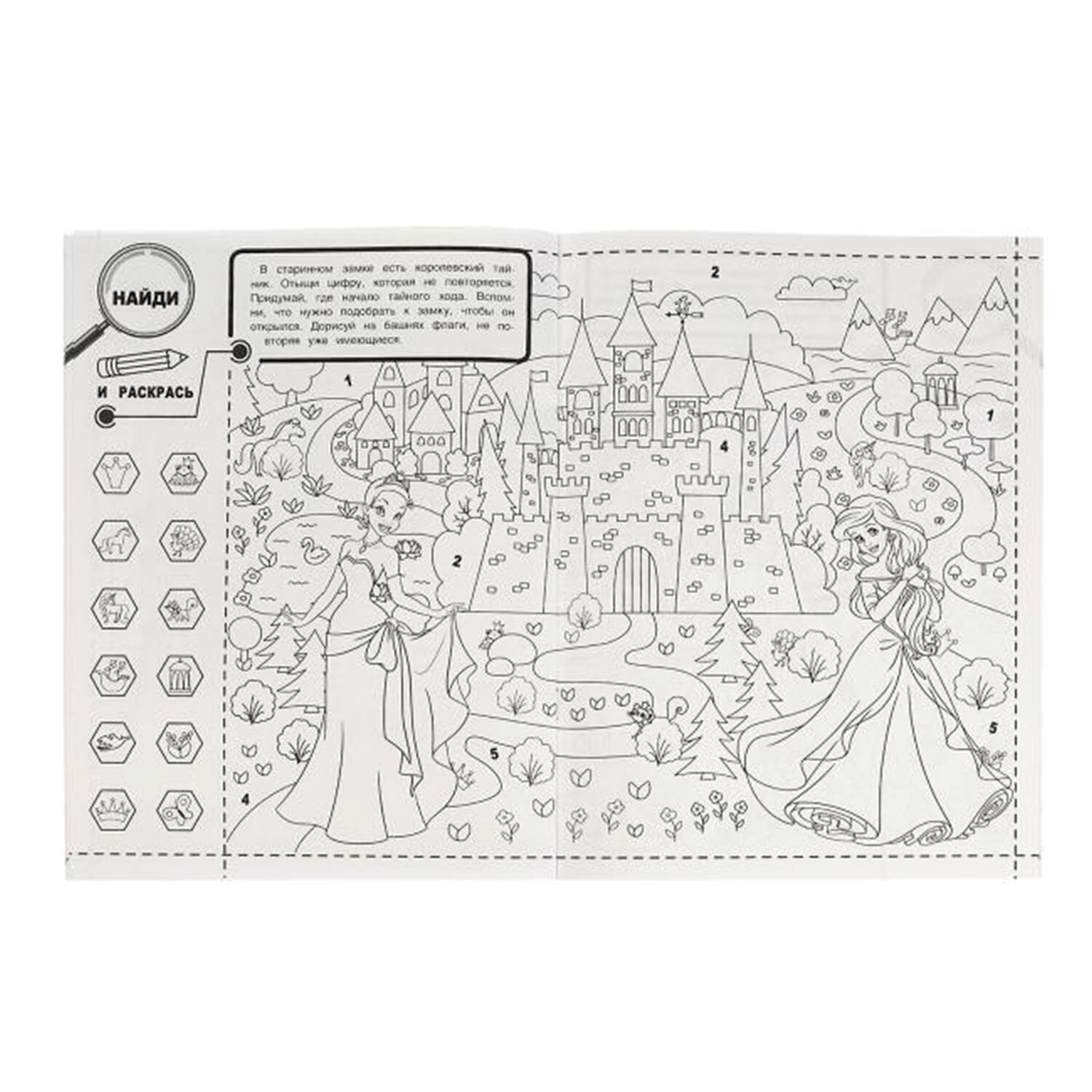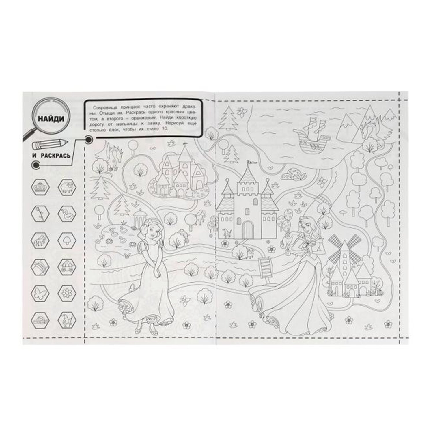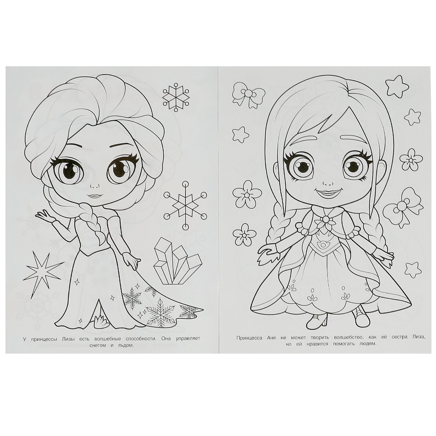Комплект состоит из 10 раскрасок разных сюжетов без возможности выбора сюжетов. В наборе представлены самые популярные сюжеты для девочек 4-6 лет. В наборе есть раскраски с заданиями.