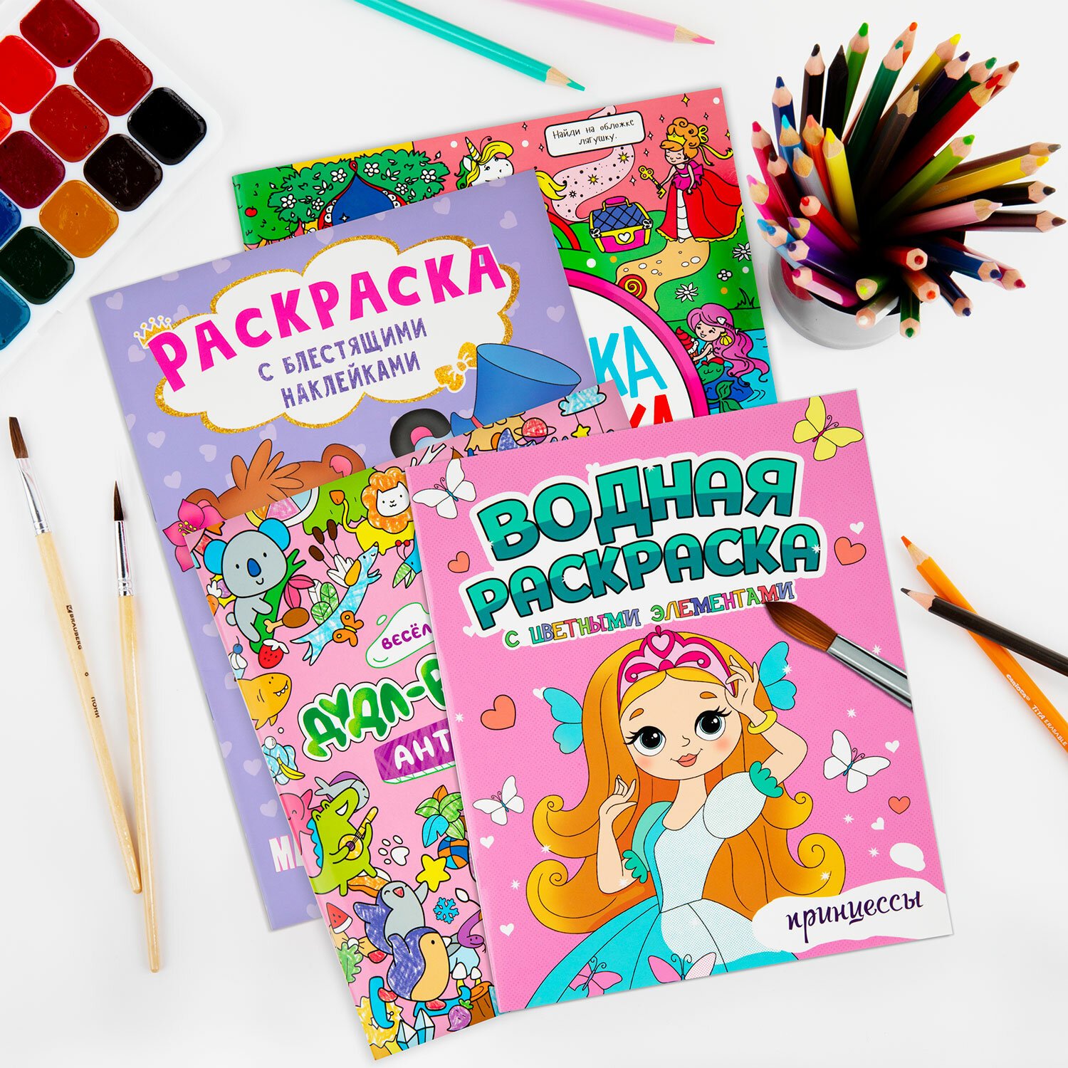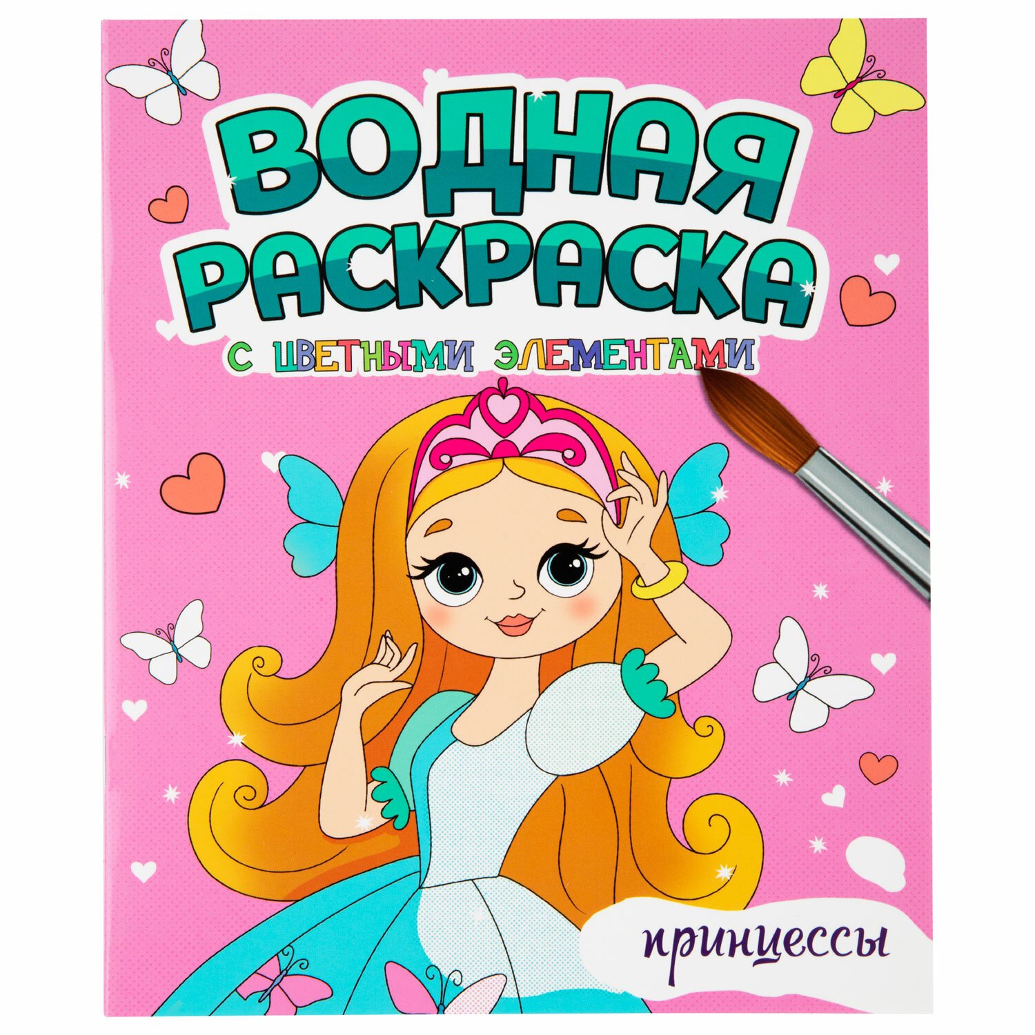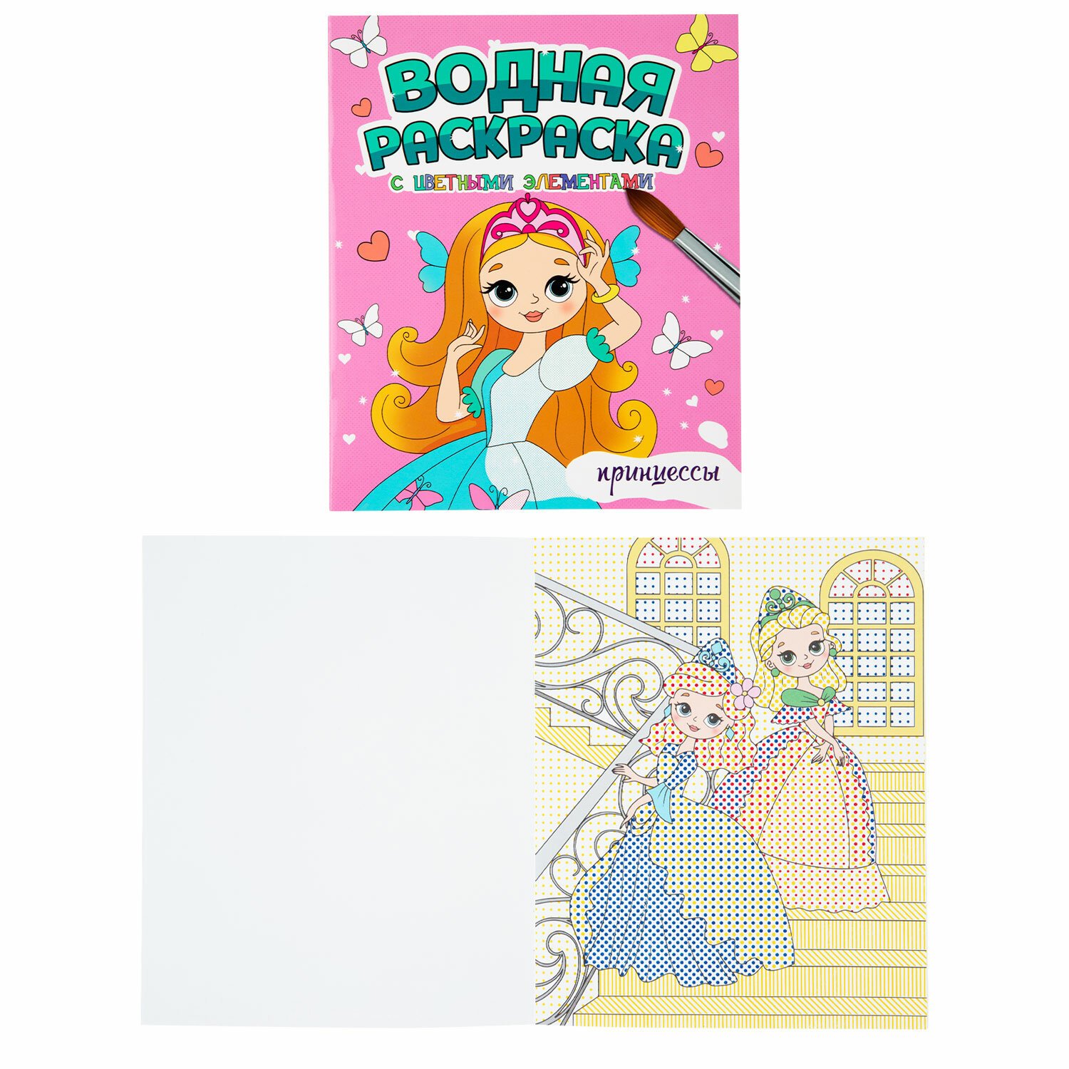 3. Водная раскраска с цветными элементами. "Принцессы", 198х248, 12 стр.