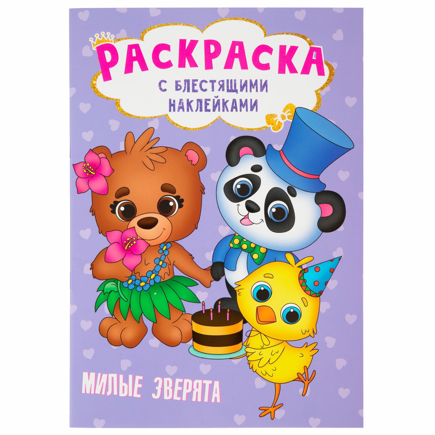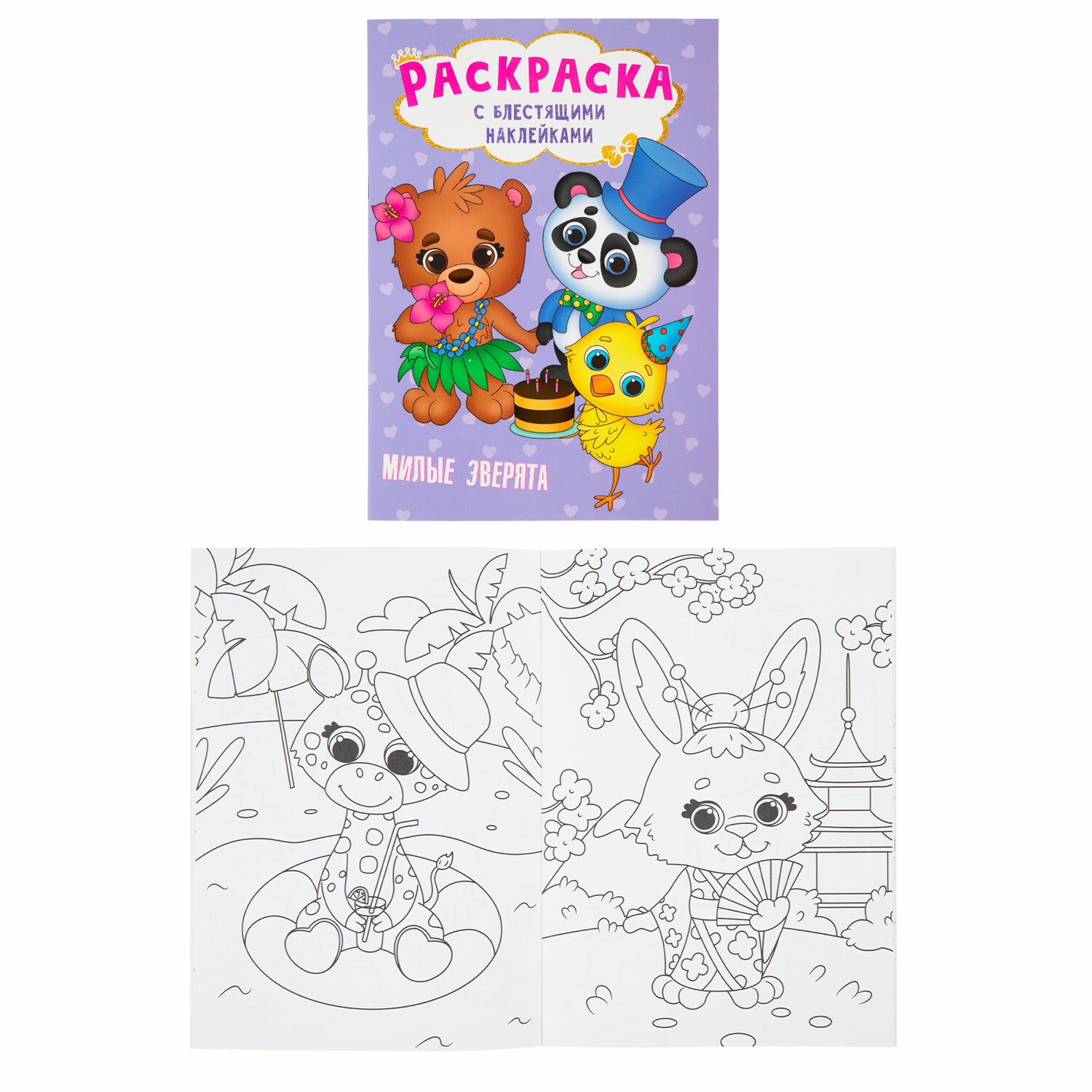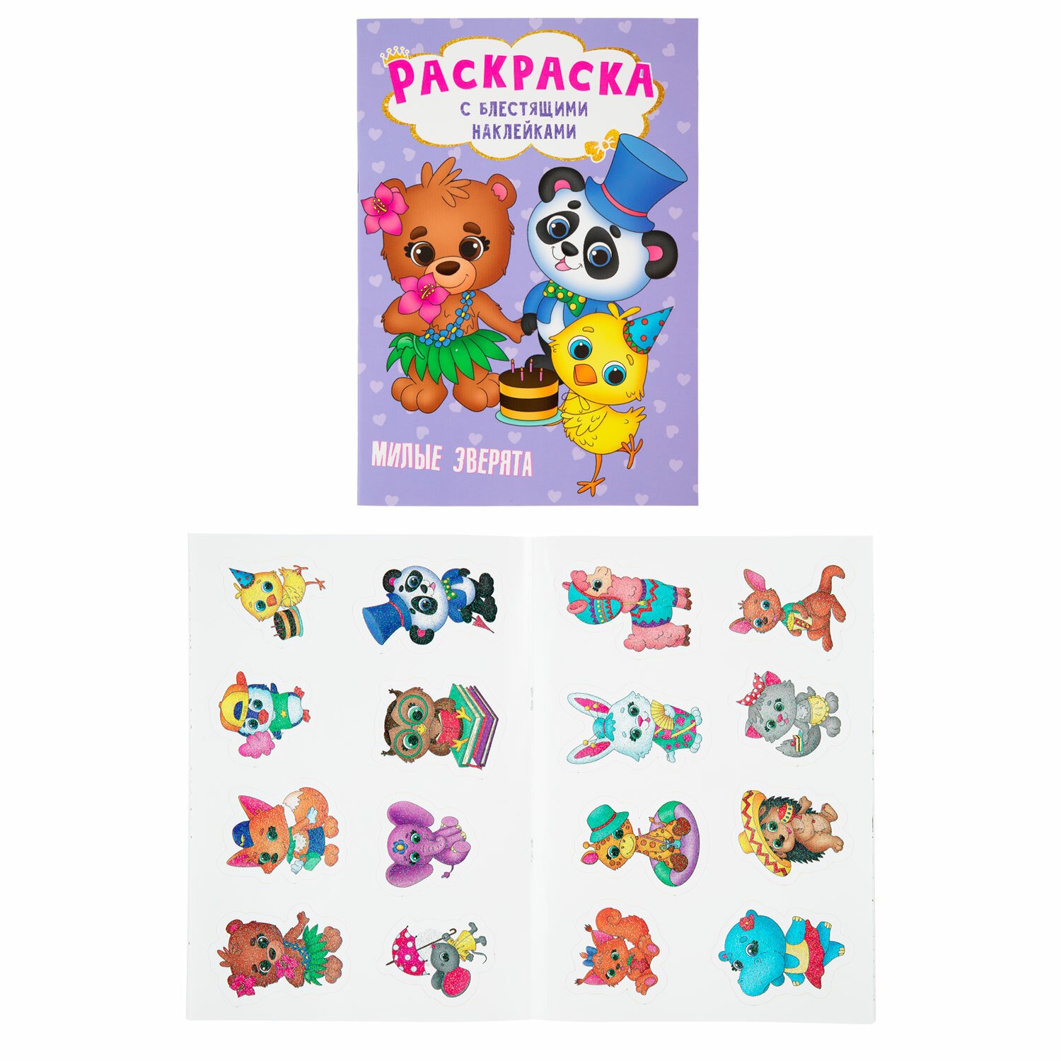 1. Раскраска с блестящими наклейками. "Милые зверята", 195х276 мм, 16 стр.