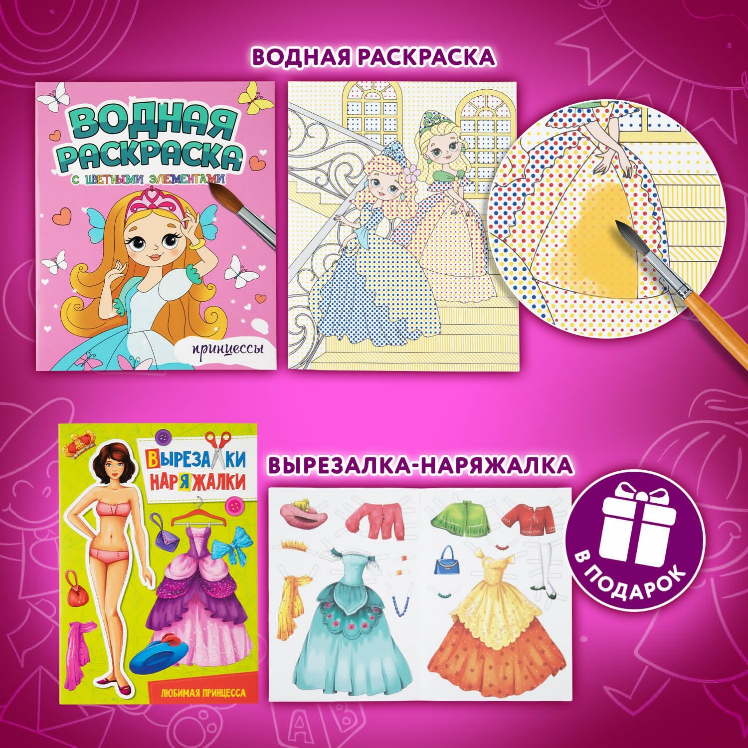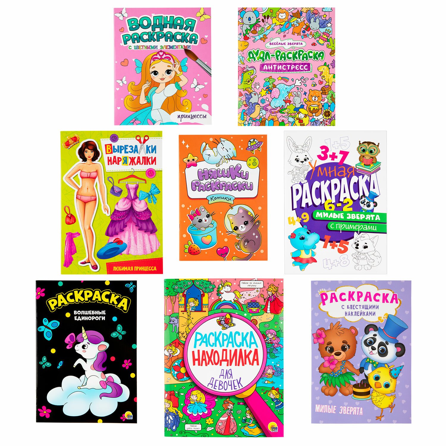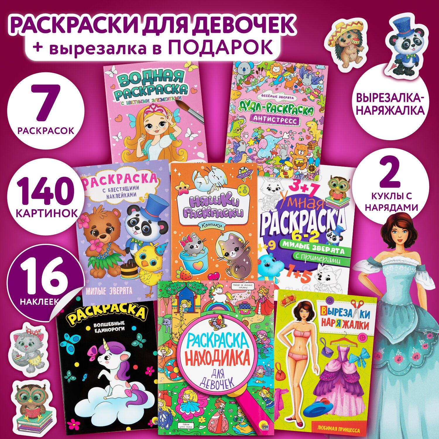Раскраски для девочек + вырезалка в ПОДАРОК, КОМПЛЕКТ 8 шт., ПП