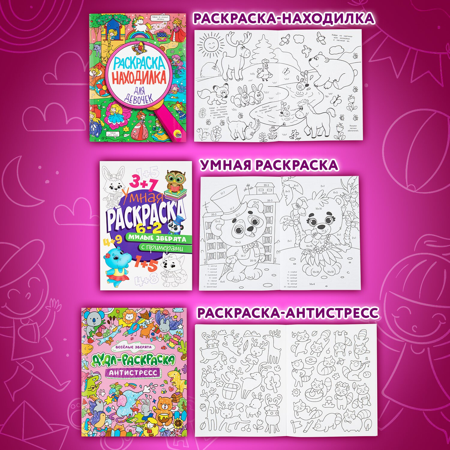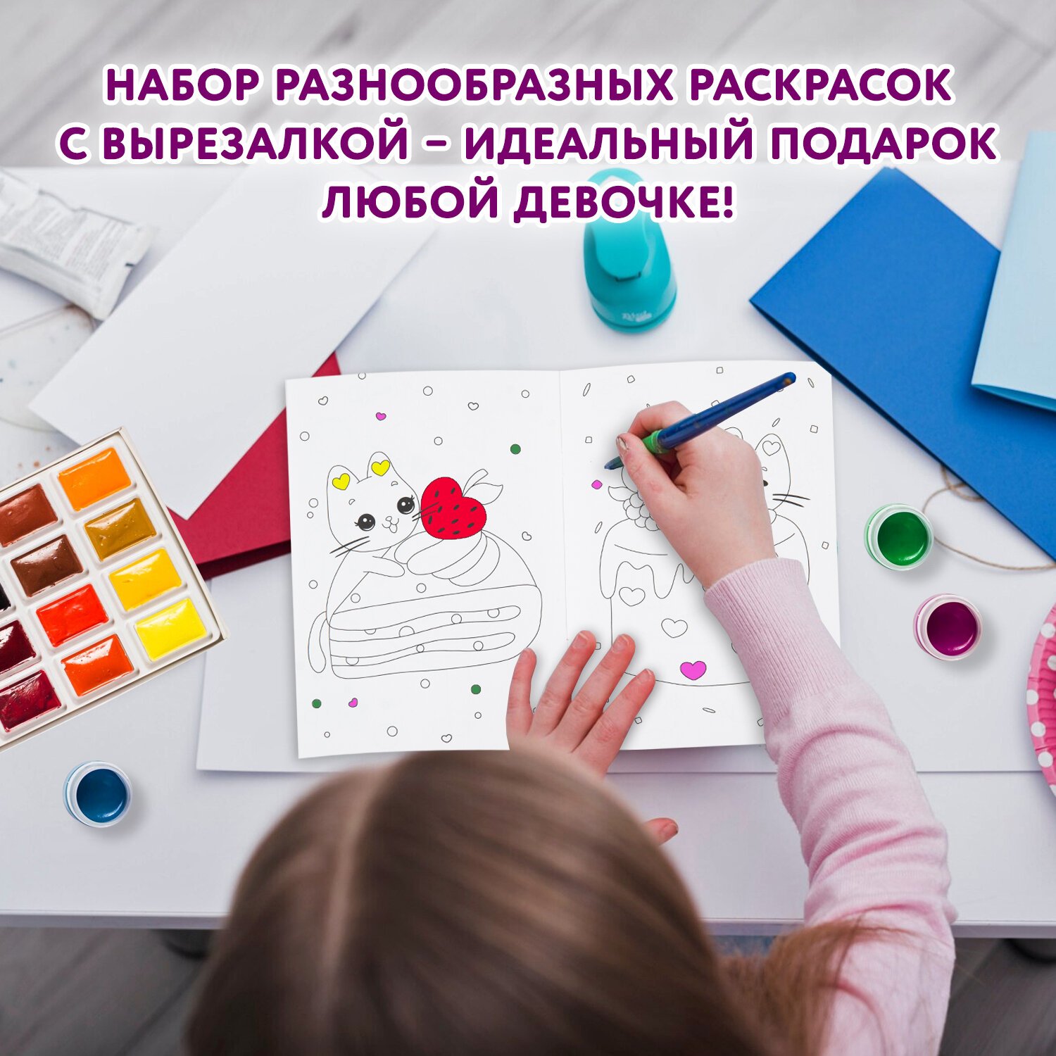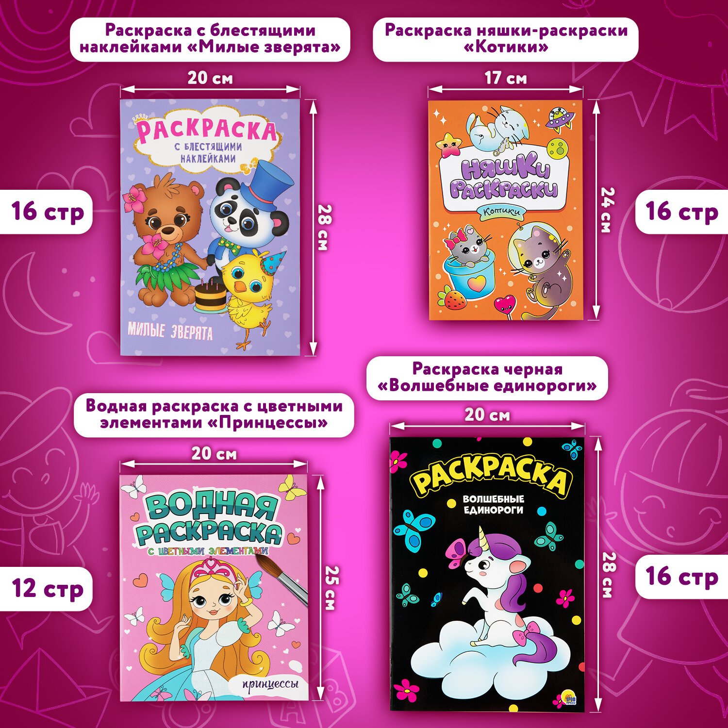 Раскраски для девочек + вырезалка в ПОДАРОК, КОМПЛЕКТ 8 шт., ПП