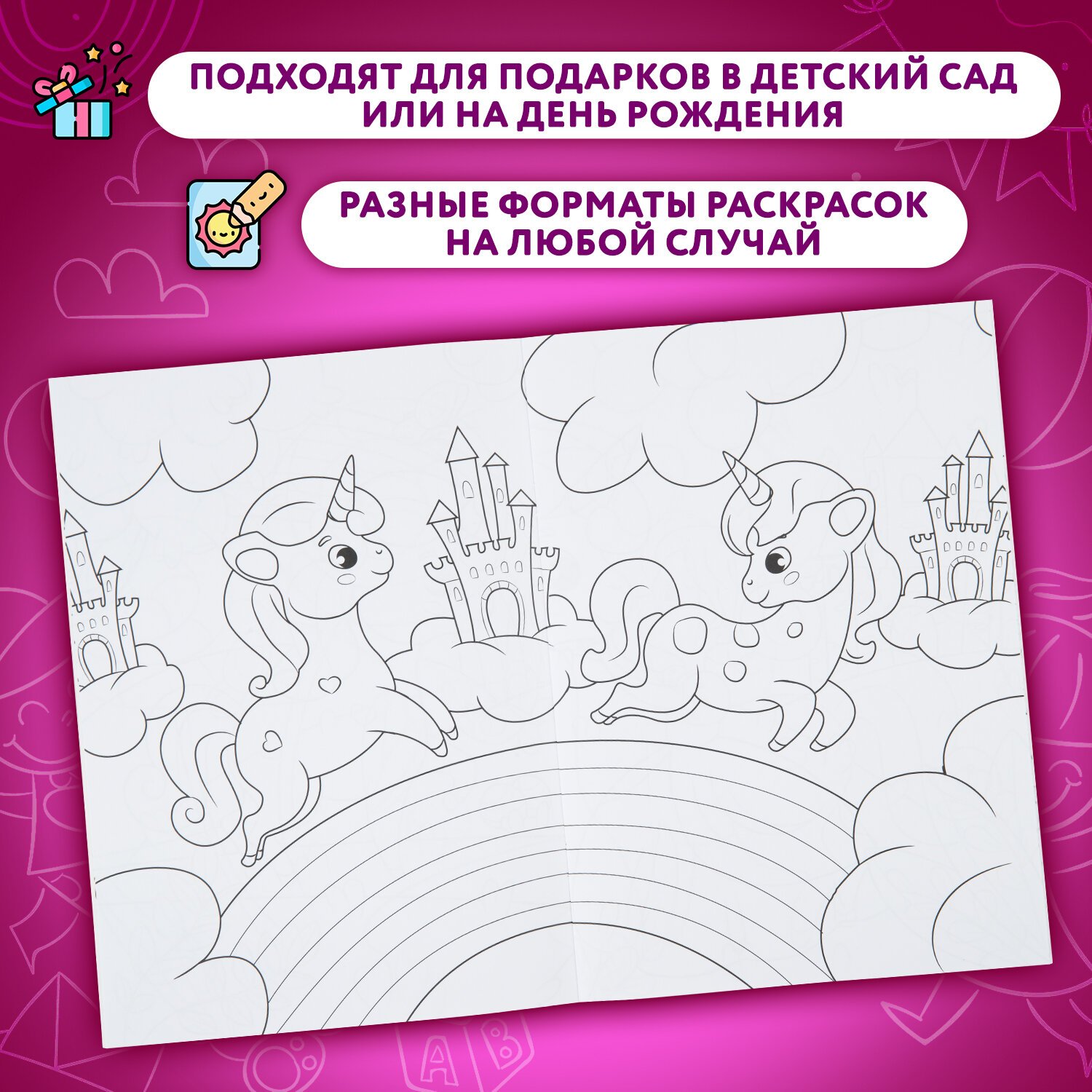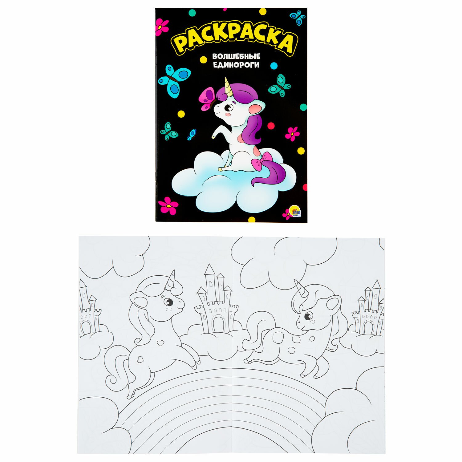 4. Моя раскраска А4 черная. "Волшебные единороги", 195х276 мм, 16 стр.
