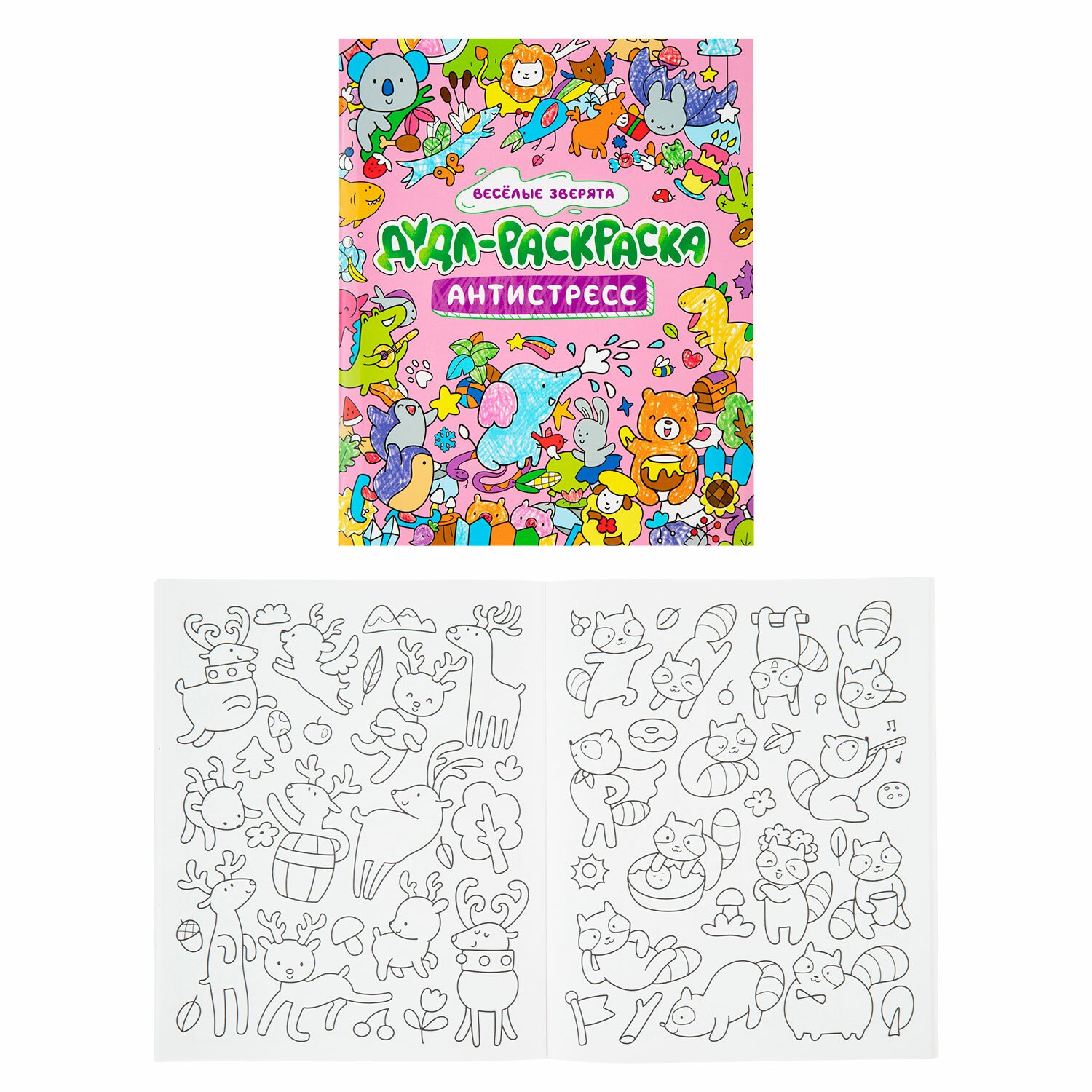 7. Дудл-раскраска. Антистресс. "Веселые зверята", 196х260 мм, 32 стр.