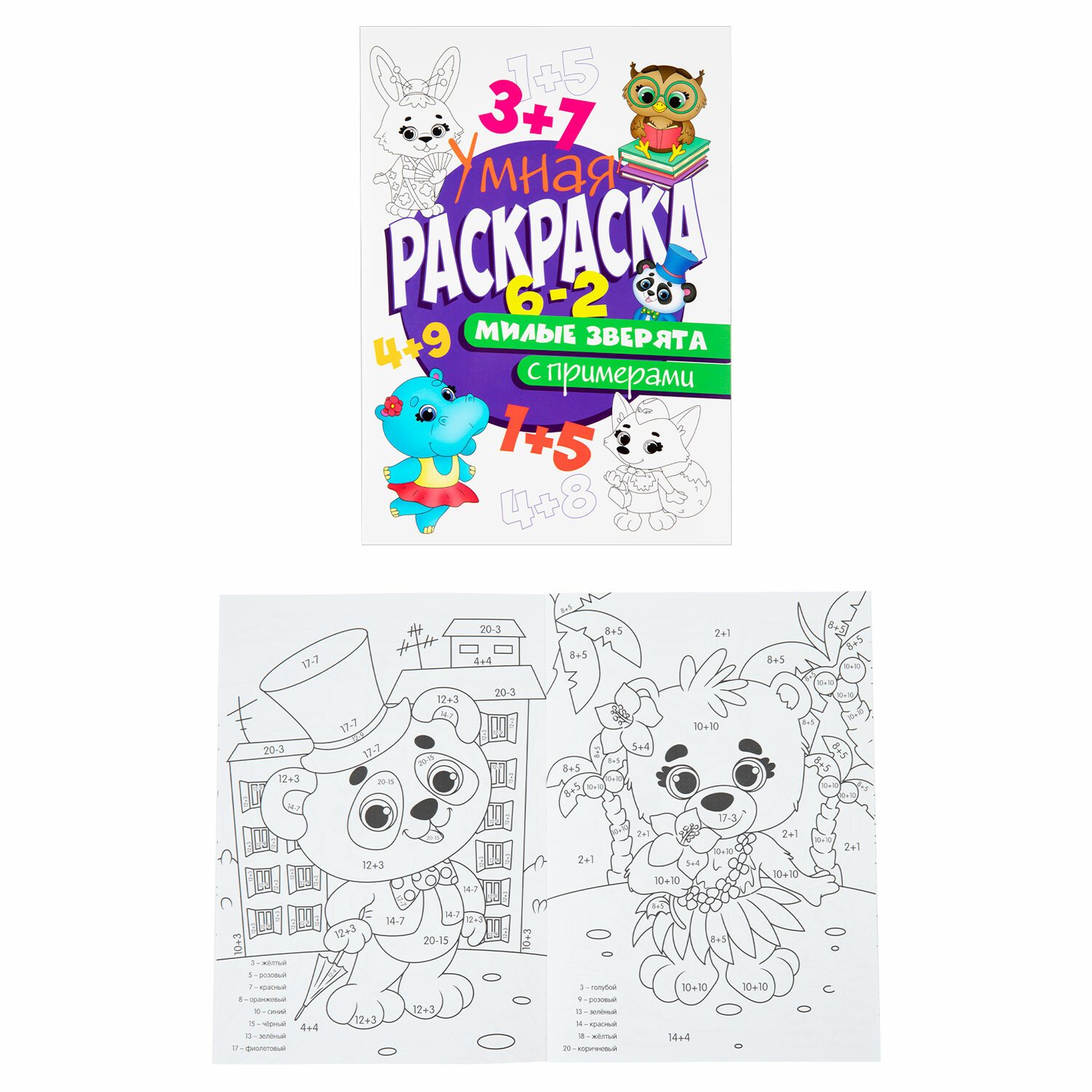 6. Умная раскраска с примерами. "Милые зверята", 195х276 мм, 16 стр.