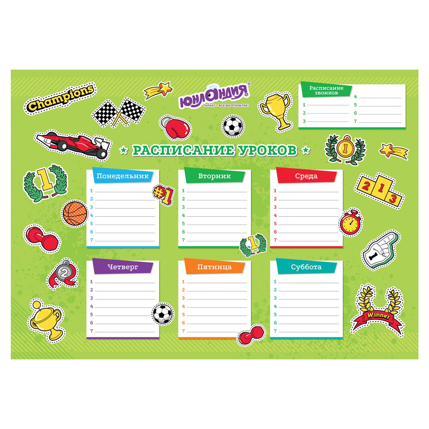 Расписание уроков и звонков А3, ЮНЛАНДИЯ, для мальчиков, ассорти (2 вида), 111653