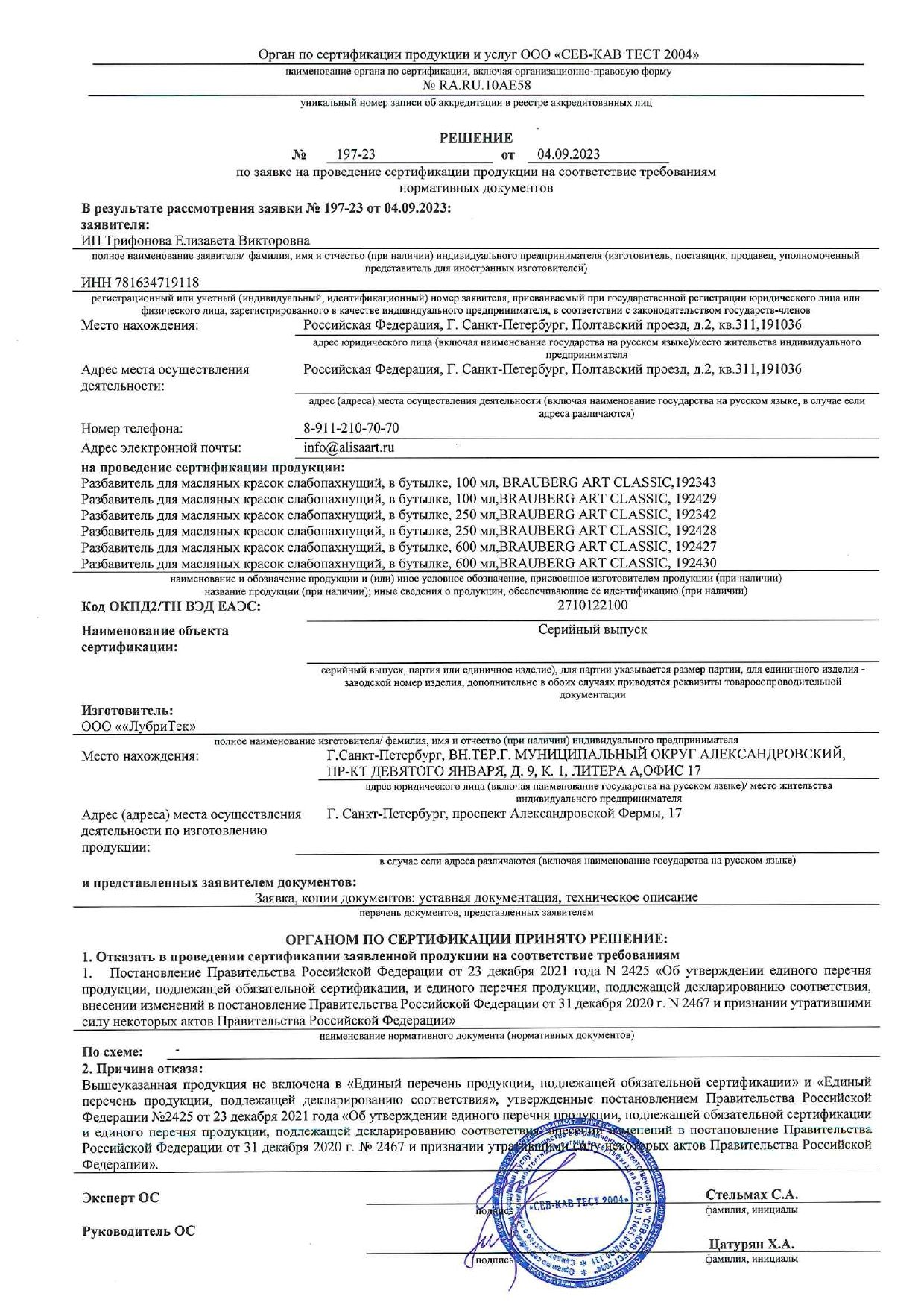 Разбавитель для масляных красок на основе очищенной деароматизированной парафиновой фракции. Цвет разбавителя в массе - прозрачный. Предназначен для разведения художественных масляных, пентамасляных и алкидных красок. Применяется для быстрой и бережной очистки кистей. Может использоваться для разбавления лаков и применяться вместе с льняным маслом.