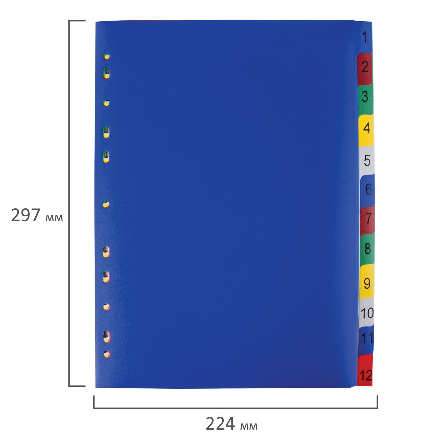 Разделитель пластиковый BRAUBERG, А4, 12 листов, цифровой 1-12, оглавление, цветной, РОССИЯ, 225610