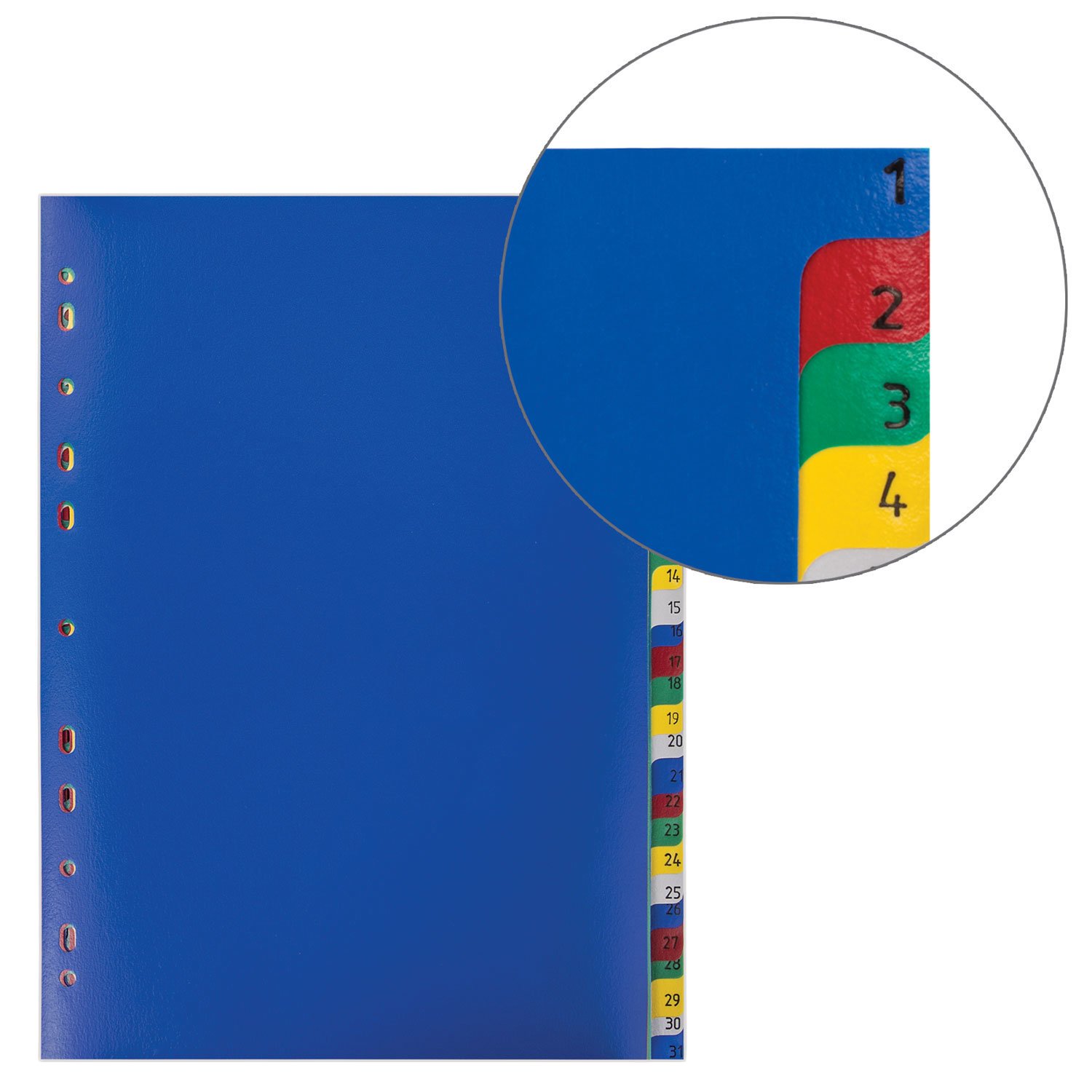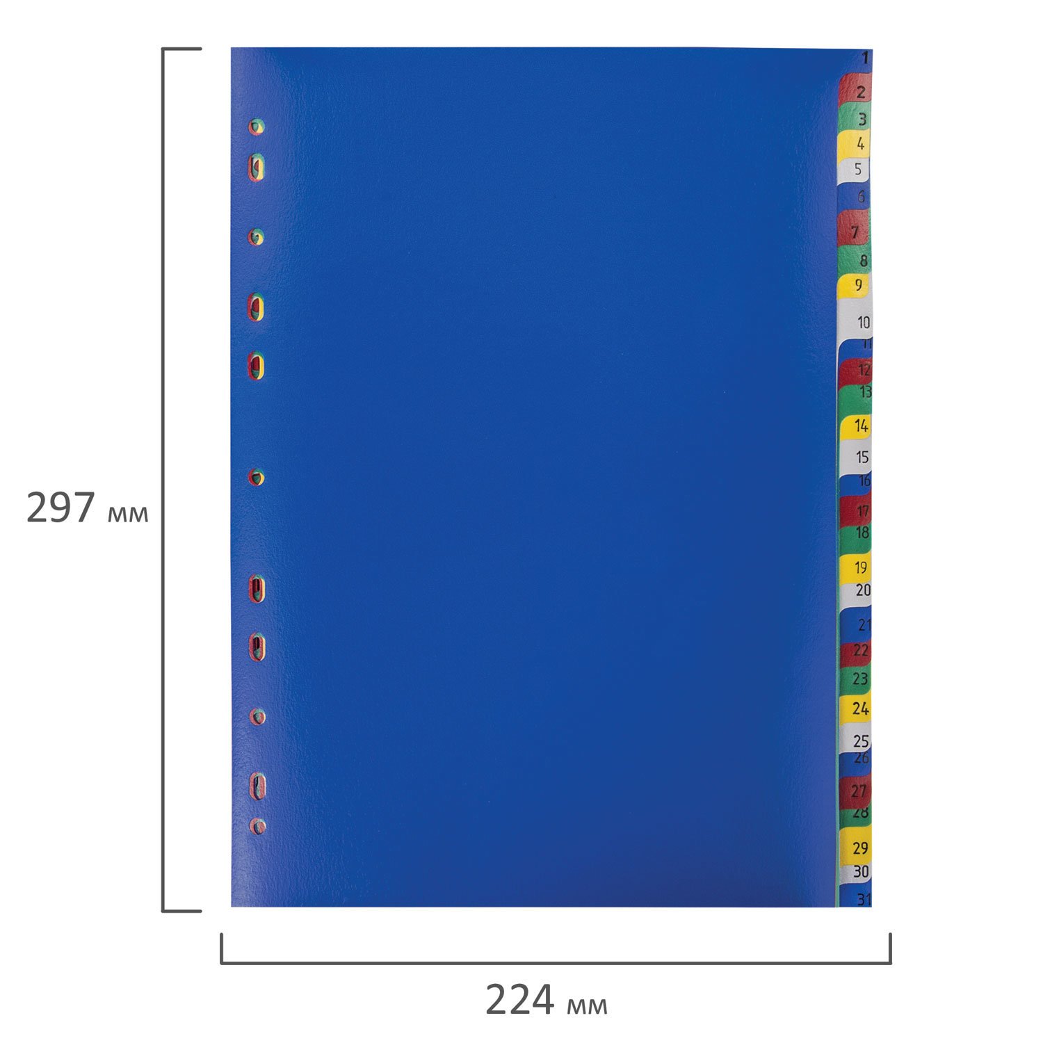 Разделитель пластиковый широкий BRAUBERG А4+, 31 лист, цифровой 1-31, оглавление, цветной, 225624