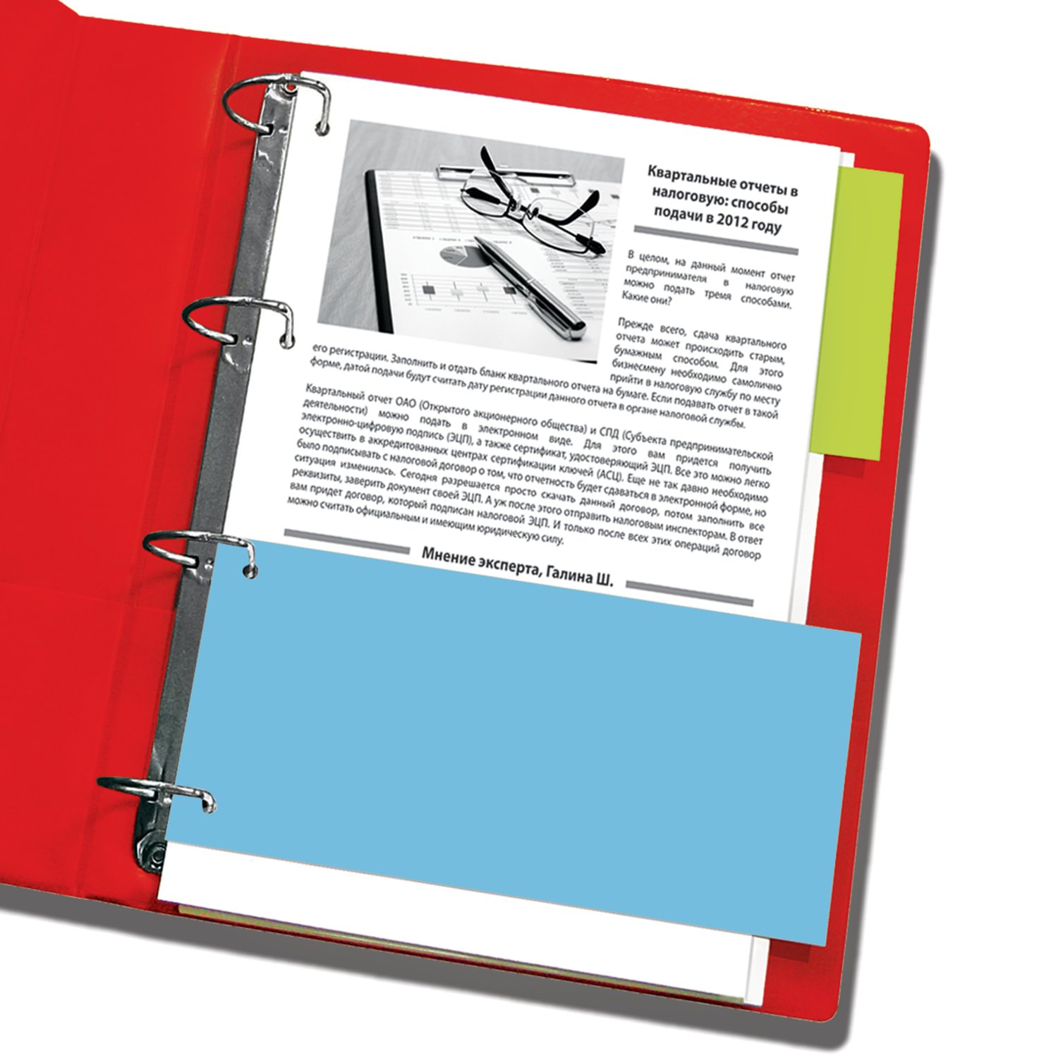 Изготовлены из качественного картона плотностью 160 г/м2. В комплект входят 100 листов размером 240х105 мм голубого цвета. Универсальная перфорация позволяет подшивать разделители во все типы папок.