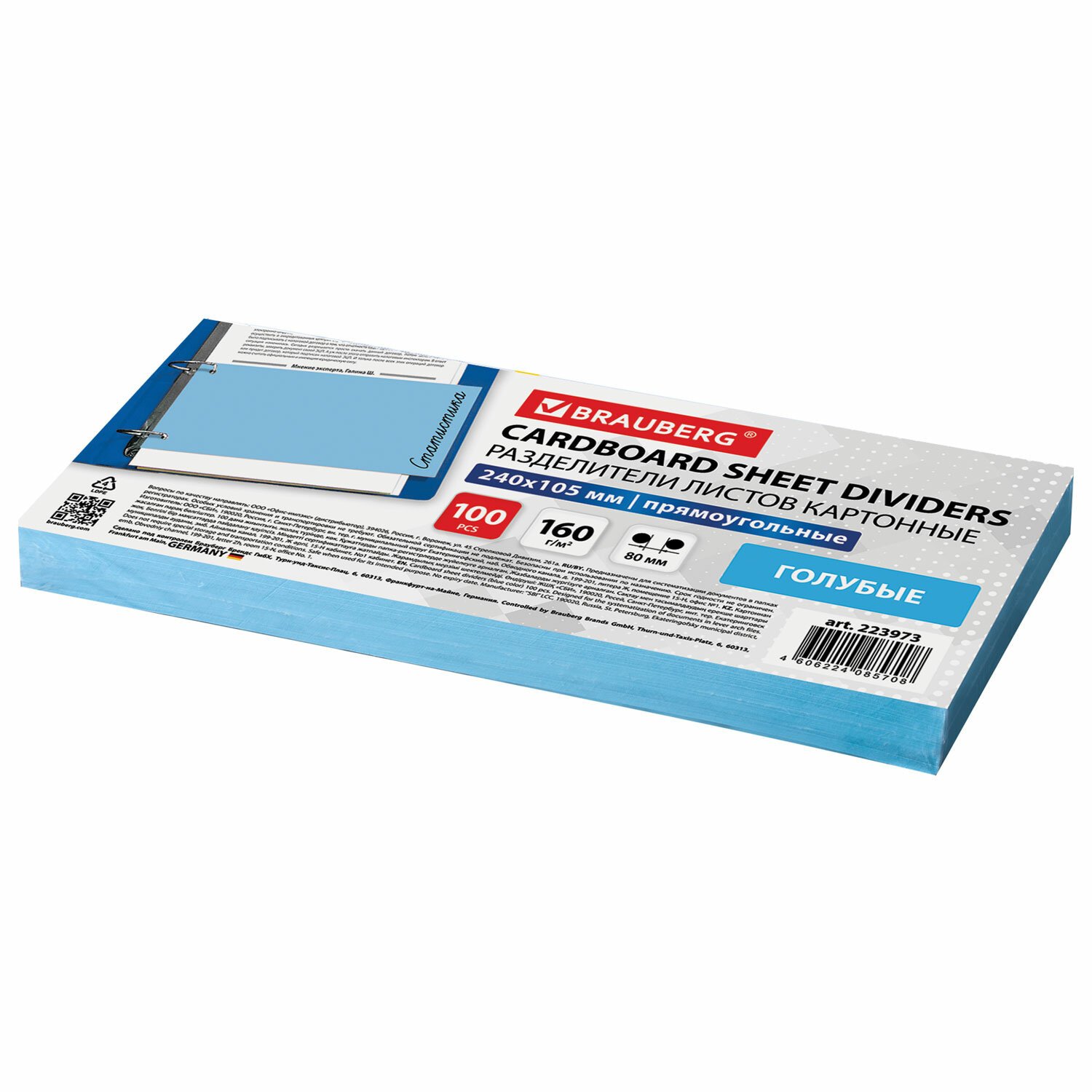Разделители листов (полосы 240х105 мм) картонные, КОМПЛЕКТ 100 штук, голубые, BRAUBERG, 223973
