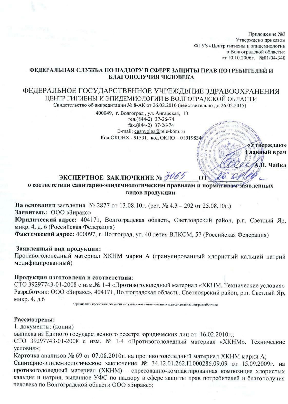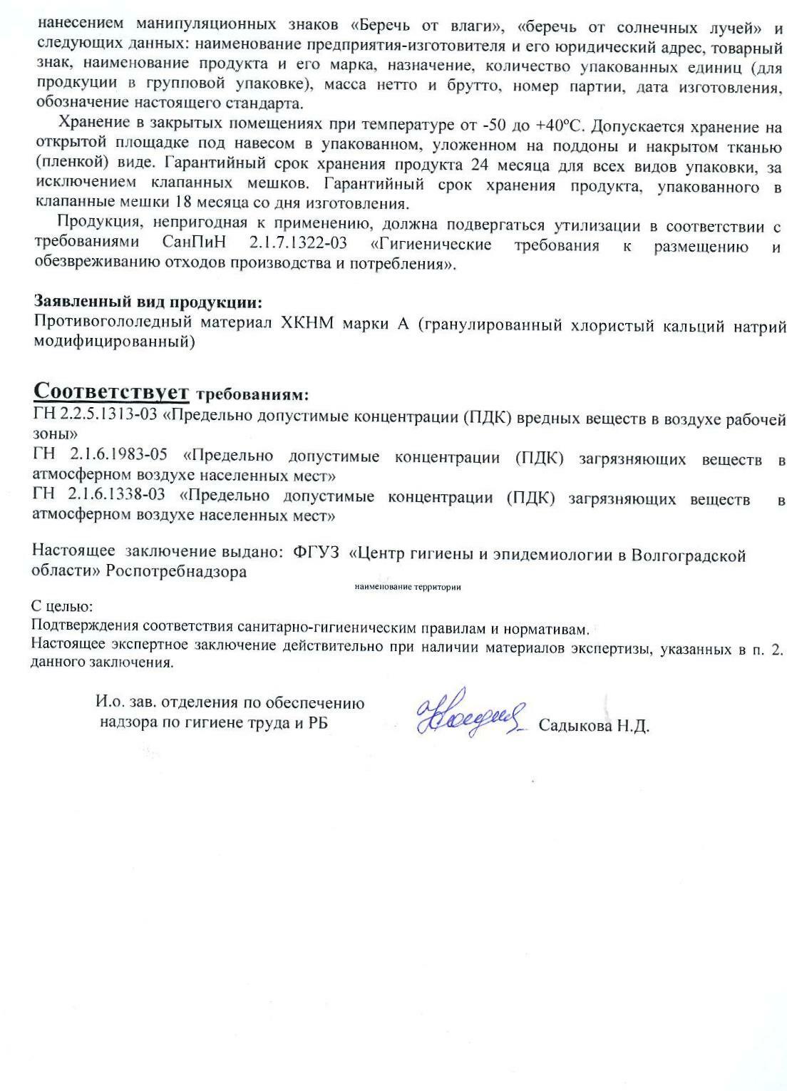 Композиция на основе гранулированных хлорида кальция (CAS 10043-52-4) и хлорида натрия (CAS 7647-14-5). Материал пожаро- и взрывобезопасен, не содержит тяжелых металлов и других вредных для людей и животных примесей. Не образует токсичных соединений в воздухе и сточных водах.