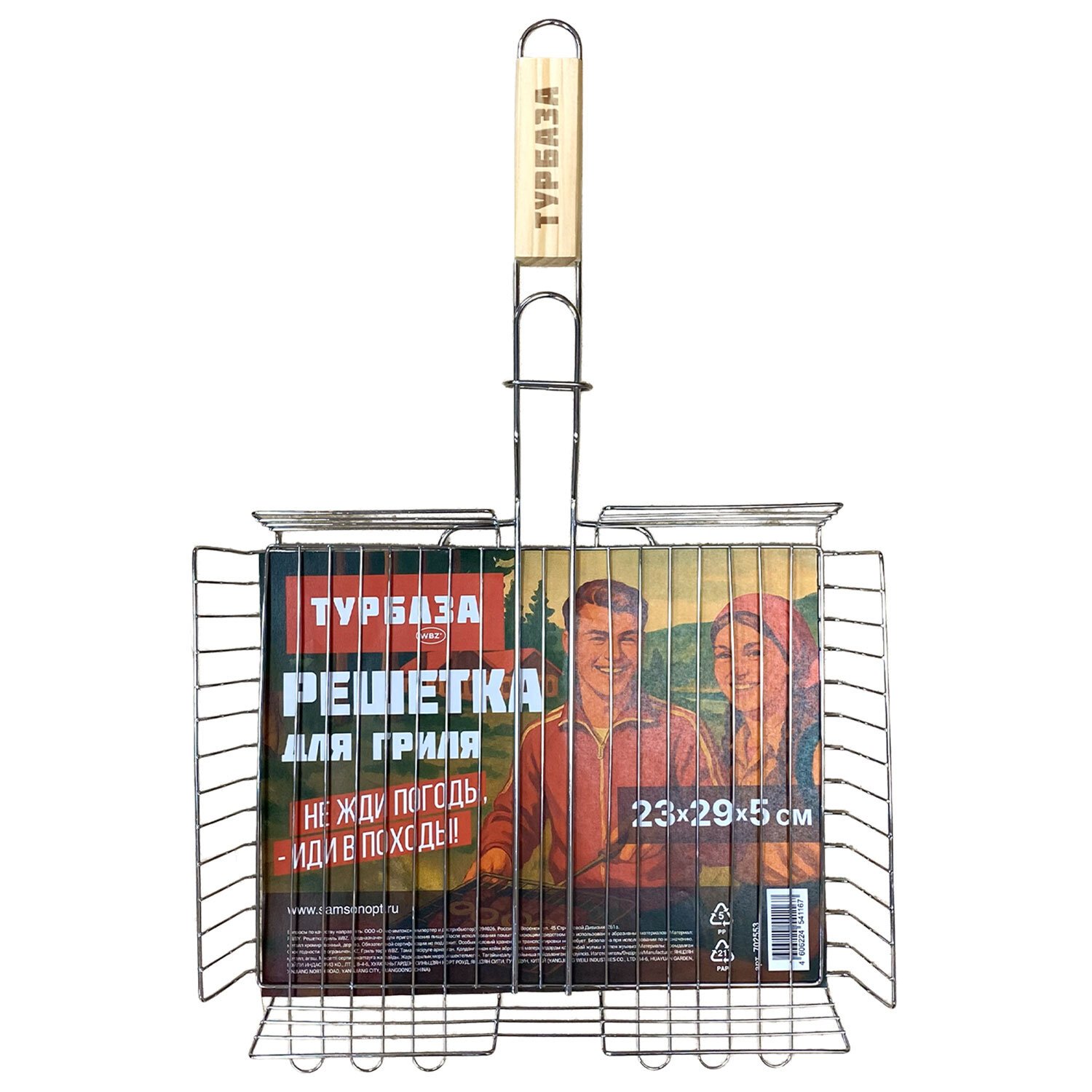 Прутья из прочной стали выдерживают высокие температуры и обеспечивают долгий срок службы. Хромированное покрытие защищает металл от коррозии, устойчиво к огню и безопасно для здоровья. Конструкция плотно закрывается и надёжно удерживает продукты при готовке. Деревянная рукоятка не нагревается, удобно ложится в руку и защищает от ожогов.