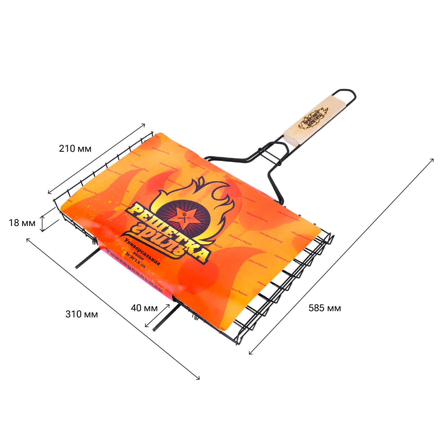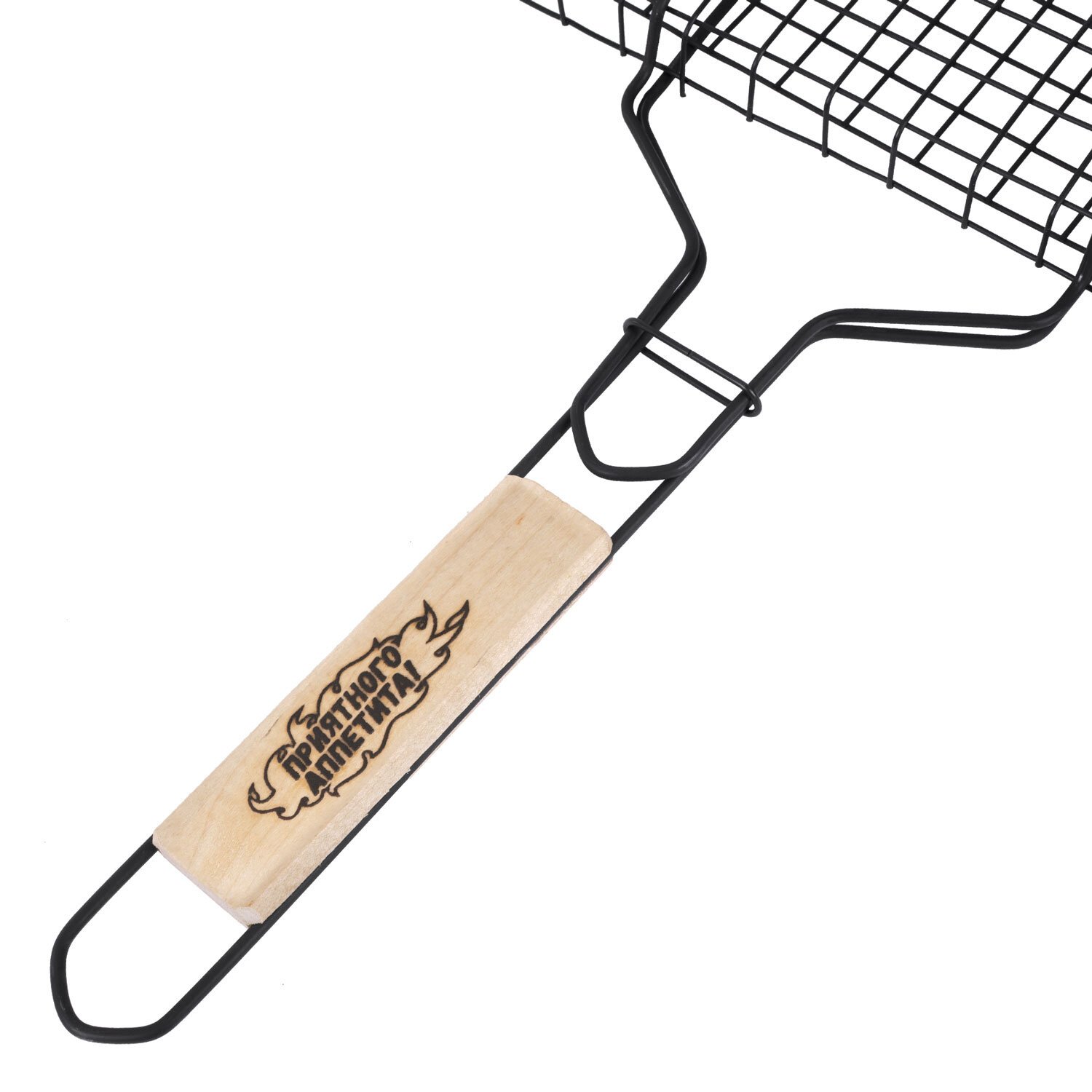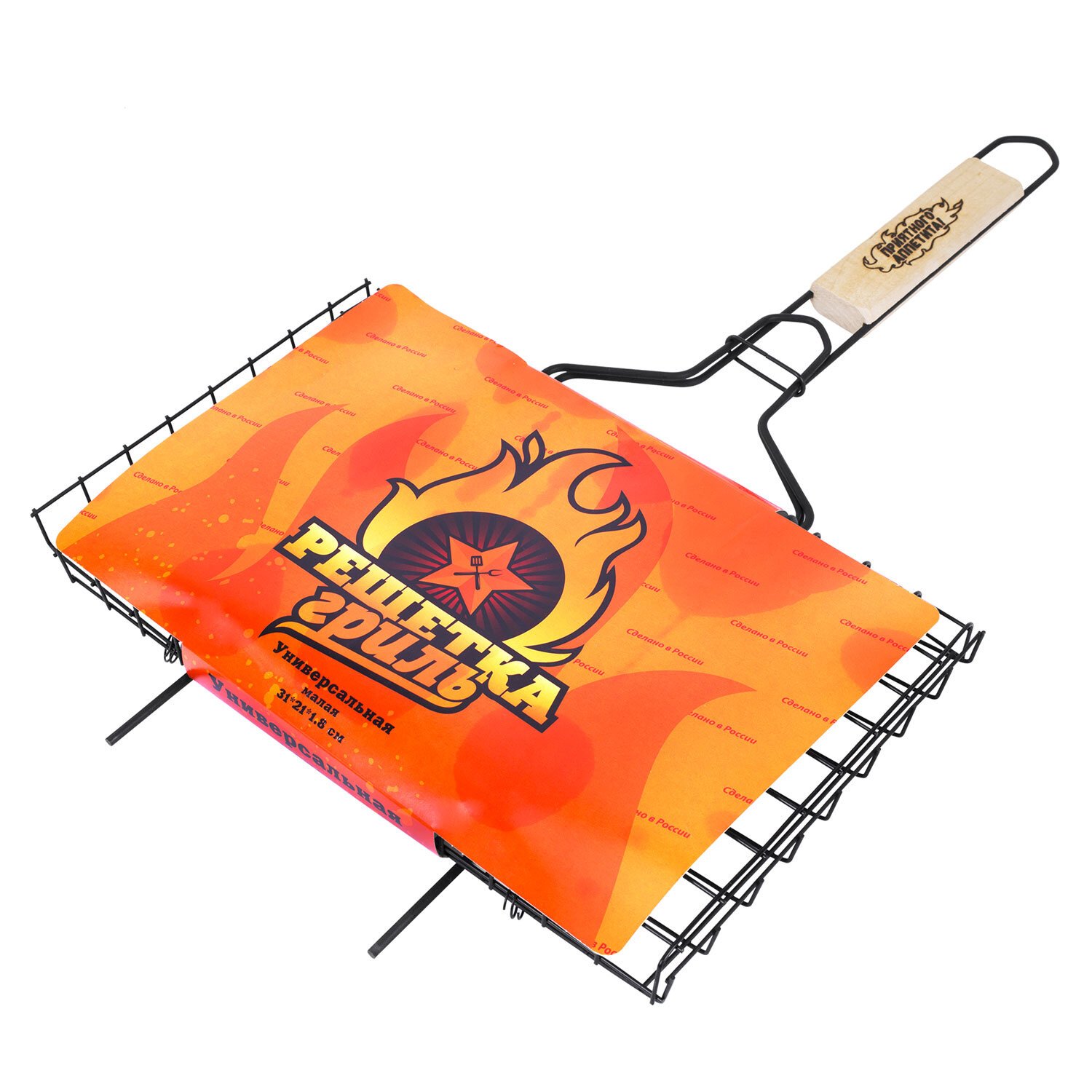 Решетка-гриль универсальная с рабочей поверхностью 31х21x1,8 см — отличное решение для приготовления мяса, грибов, овощей и иных блюд на открытом огне. Рабочая поверхность компактна и удобна, при этом обеспечивает достаточное пространство для приготовления мяса, рыбы или овощей. Прутики из прочной стали выдерживают высокие температуры и обеспечивают долгий срок службы. Оксидированное покрытие защищает от коррозии, устойчиво к огню и безопасно для здоровья. Конструкция плотно закрывается и надёжно удерживает продукты при готовке. Деревянная рукоятка не нагревается, удобно ложится в руку и защищает от ожогов.