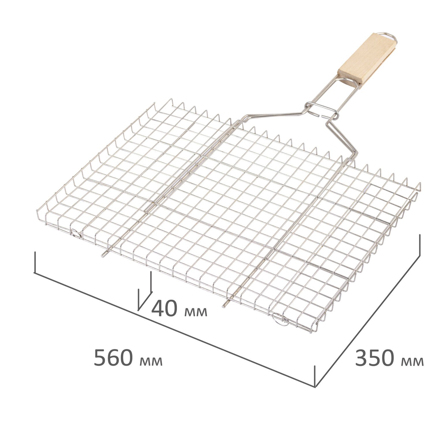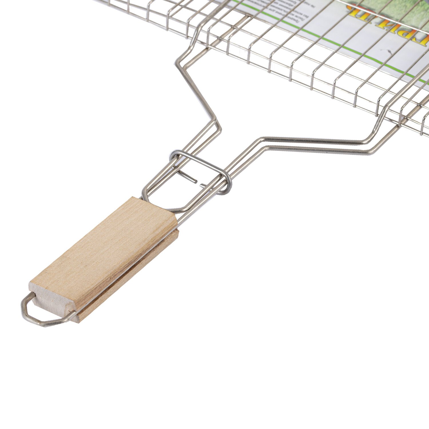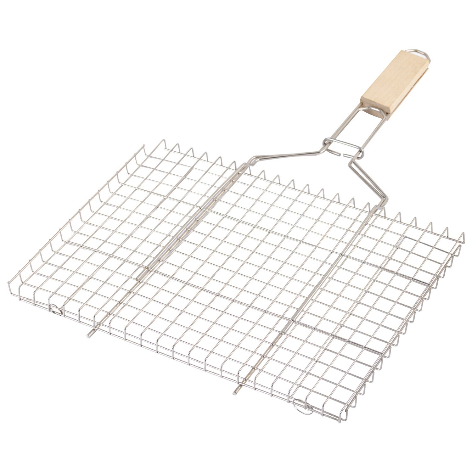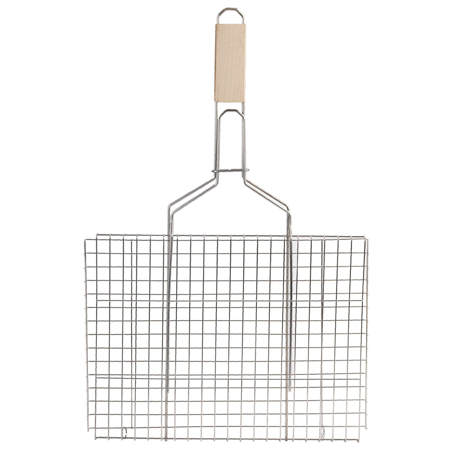Решетка-гриль универсальная с рабочей поверхностью 350х260 мм — отличное решение для приготовления мяса, грибов, овощей и иных блюд на открытом огне. Рабочая поверхность компактна и удобна, при этом обеспечивает достаточное пространство для приготовления мяса, рыбы или овощей. Прутики из прочной стали выдерживают высокие температуры и обеспечивают долгий срок службы. Никелированное покрытие защищает от коррозии, устойчиво к огню и безопасно для здоровья. Конструкция плотно закрывается и надёжно удерживает продукты при готовке. Деревянная рукоятка не нагревается, удобно ложится в руку и защищает от ожогов.
