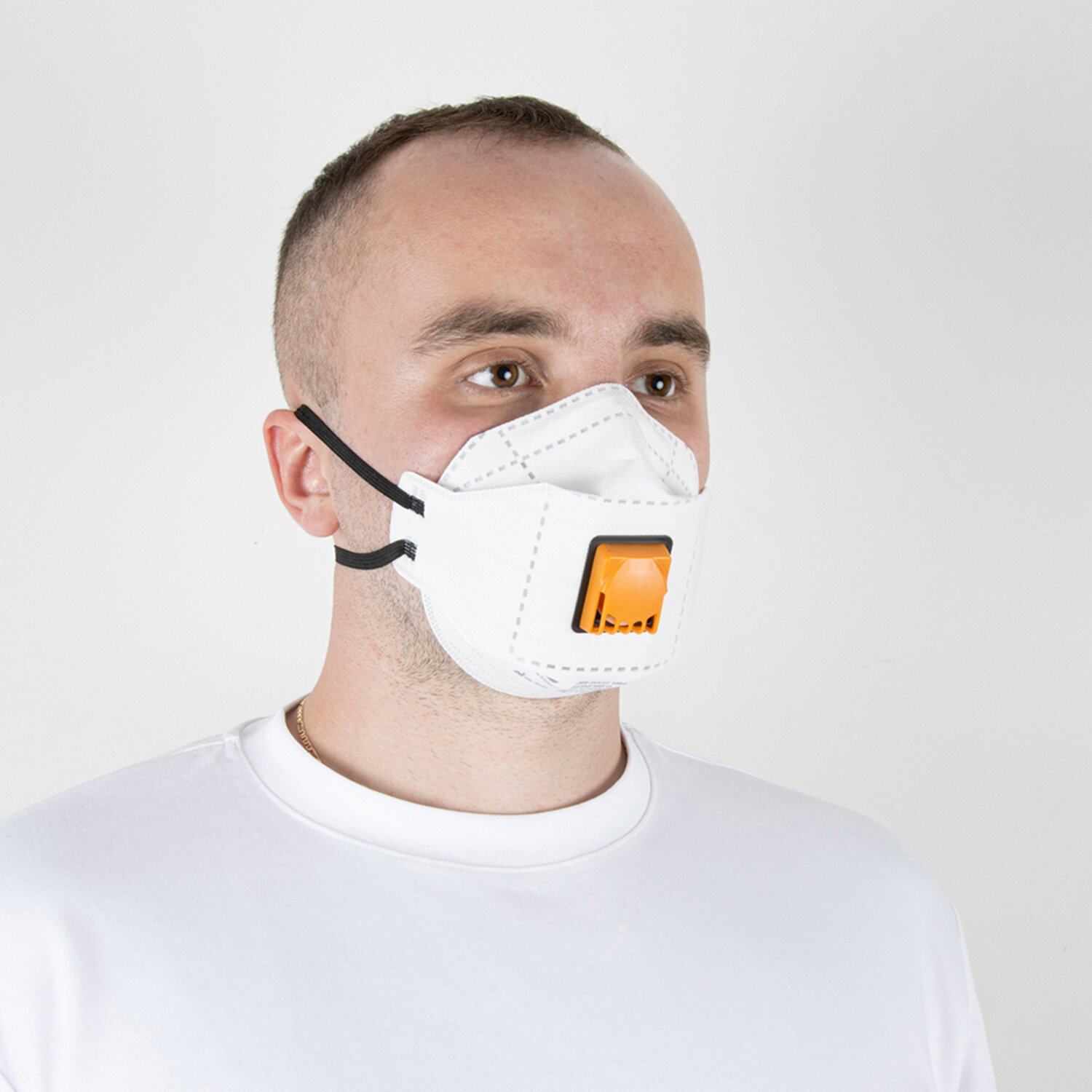 Одноразовый противоаэрозольный трехпанельный респиратор с клапаном. Защищает органы дыхания от микрочастиц стекла, бетона, металлической стружки древесной пыли, штукатурки, строительной пыли в высокой концентрации, стеклянного и минерального волокна.