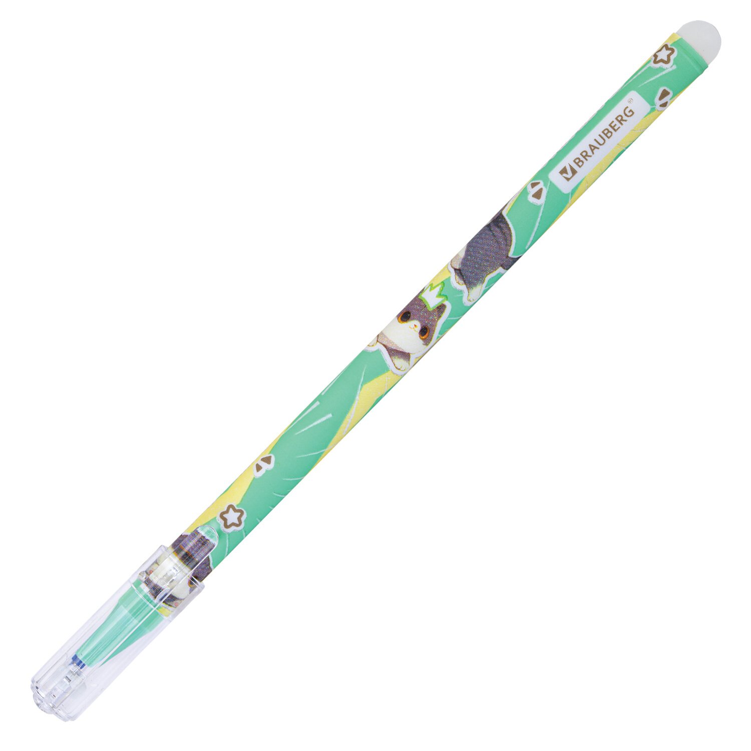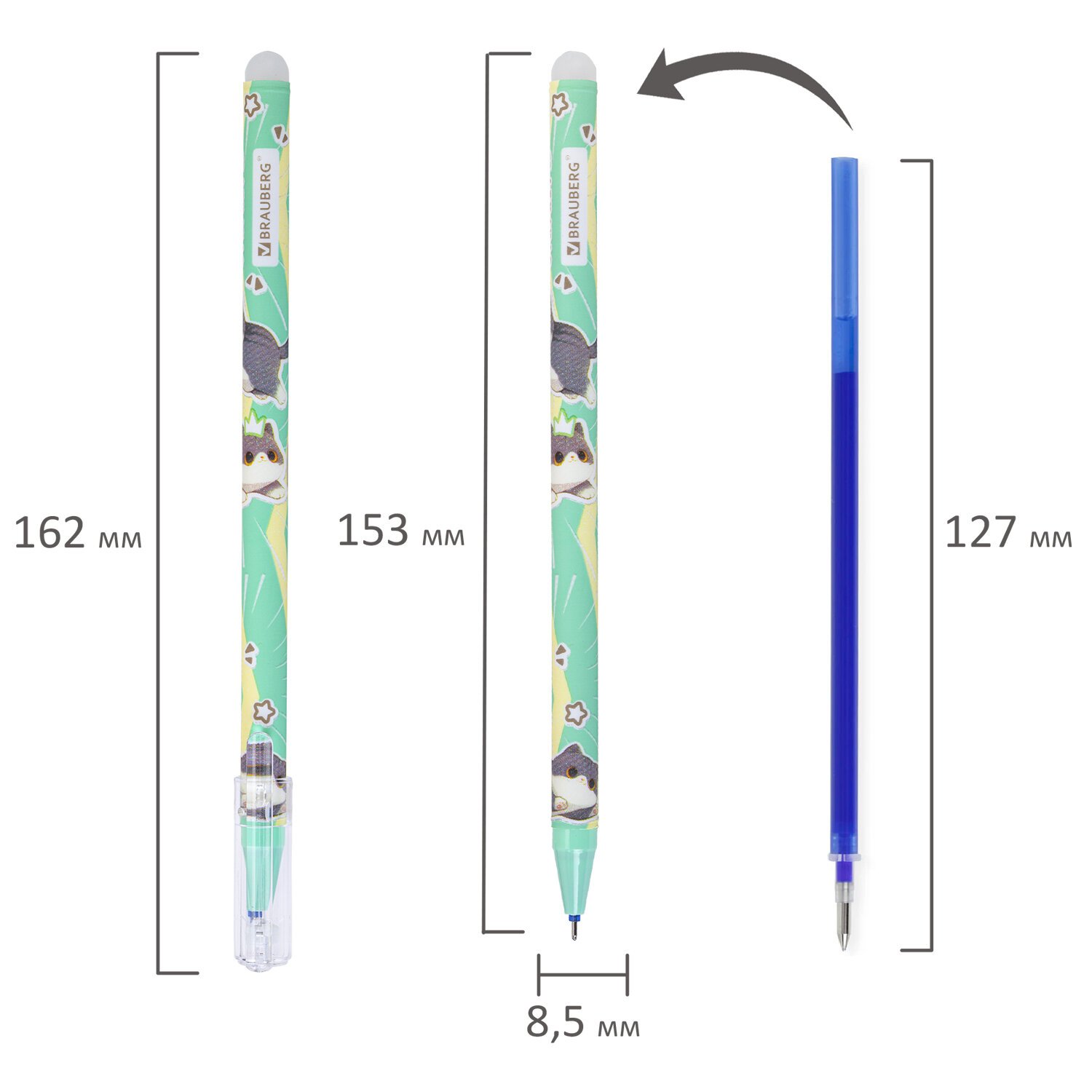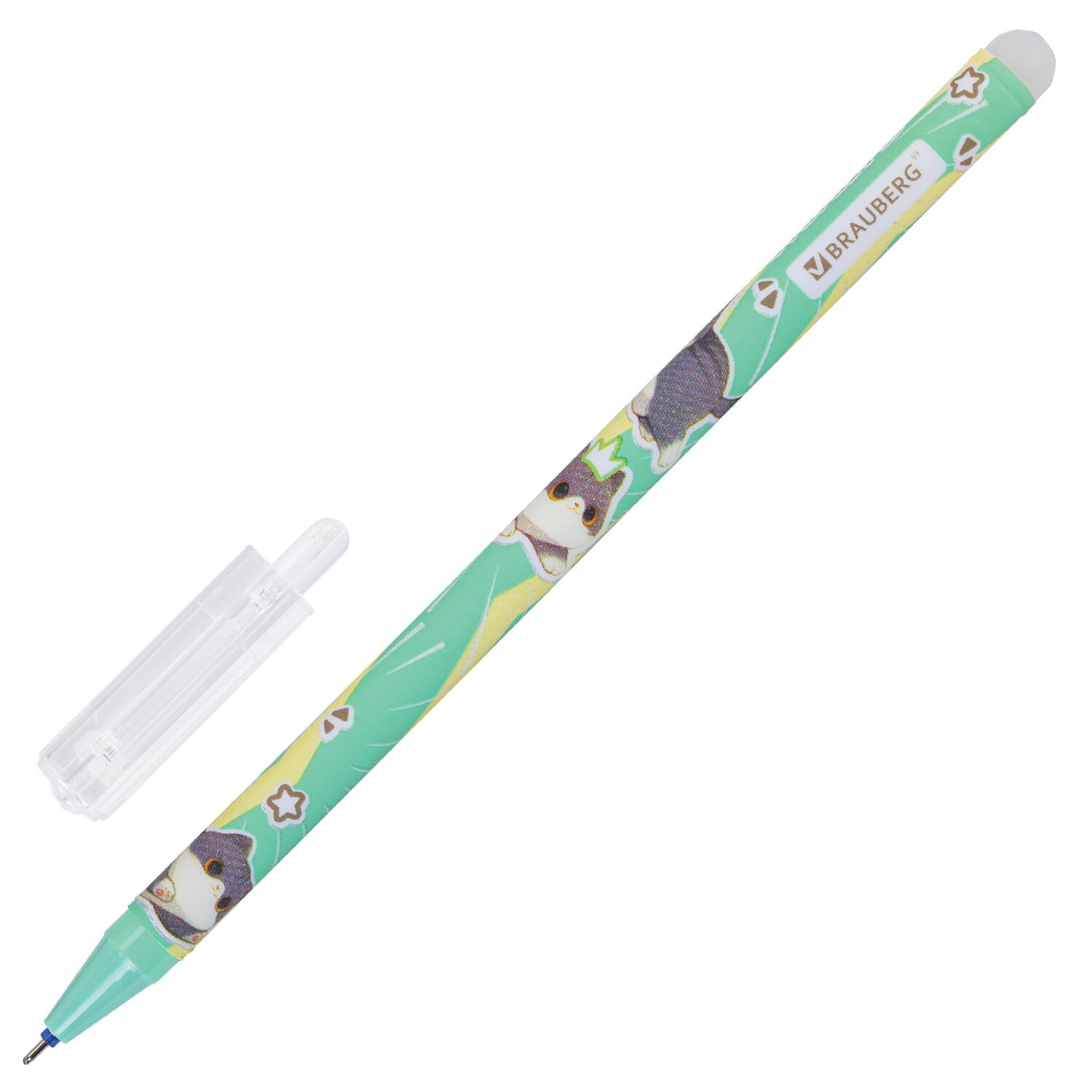 РЕЗЕРВ Ручка стираемая гелевая BRAUBERG CUTE CATS, СИНЯЯ, корпус ассорти, линия 0,35м, 144481