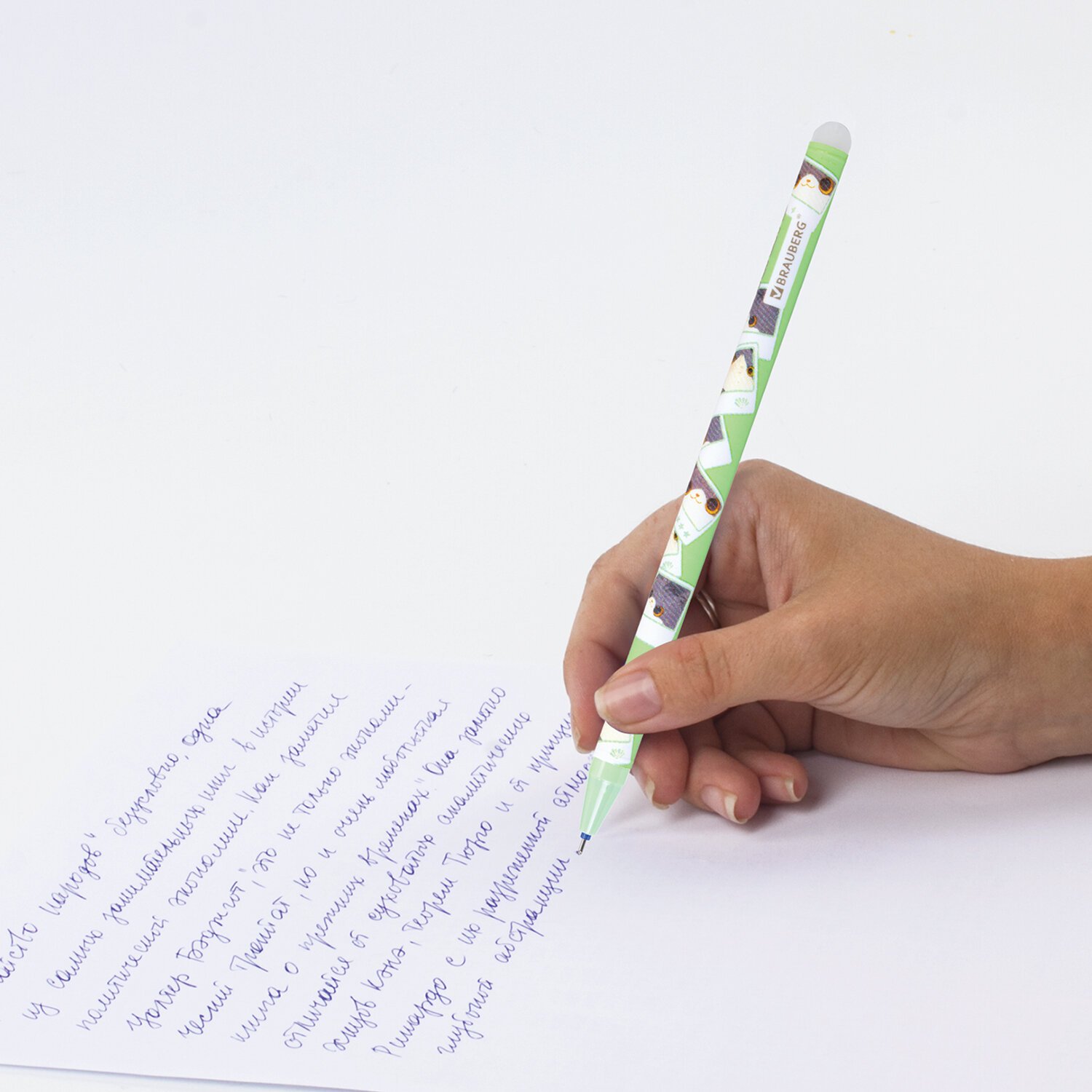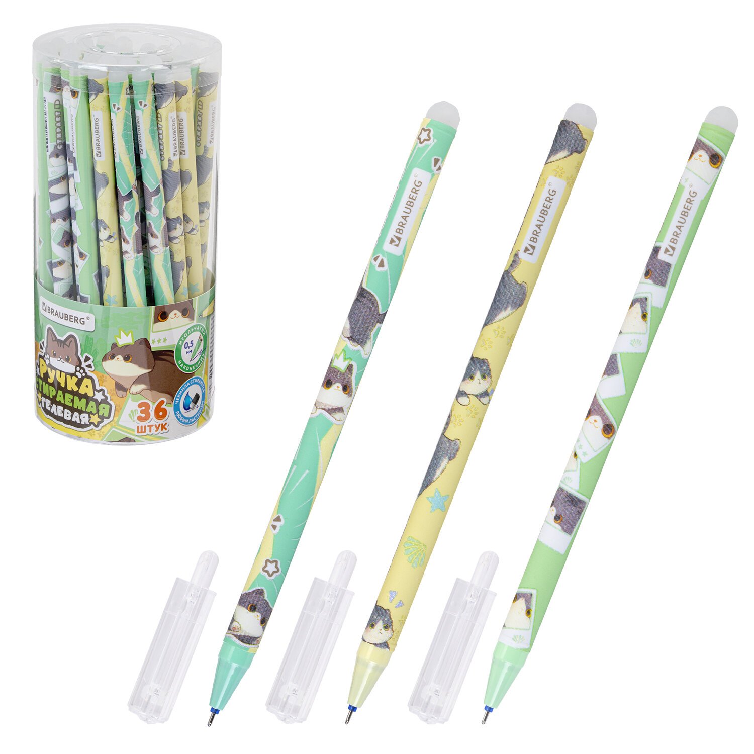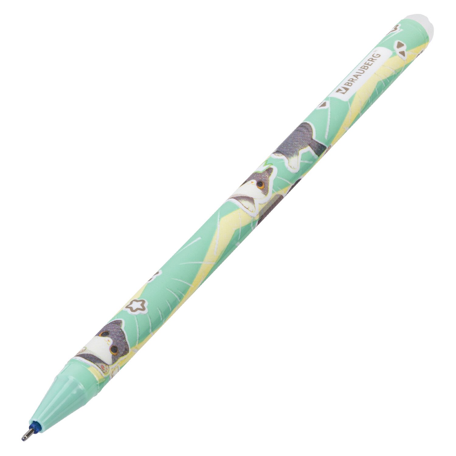 РЕЗЕРВ Ручка стираемая гелевая BRAUBERG CUTE CATS, СИНЯЯ, корпус ассорти, линия 0,35м, 144481