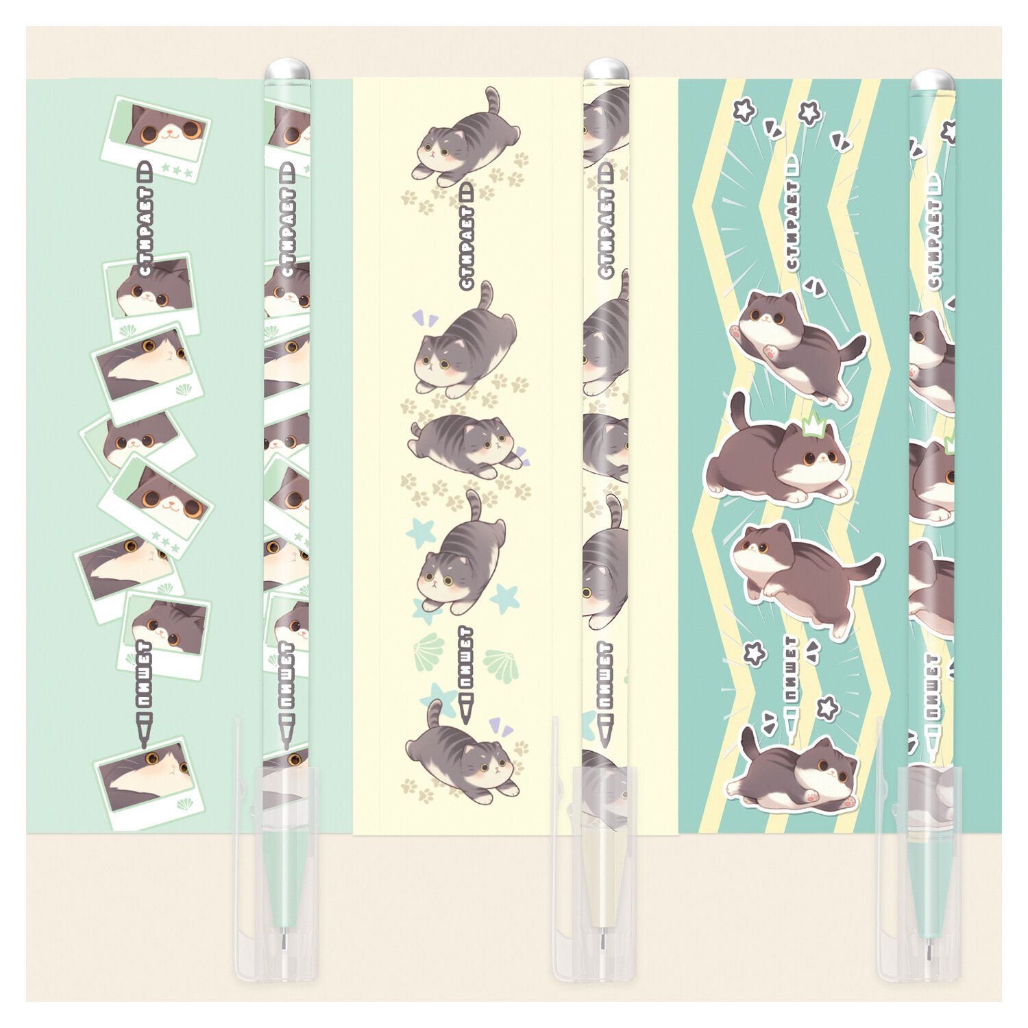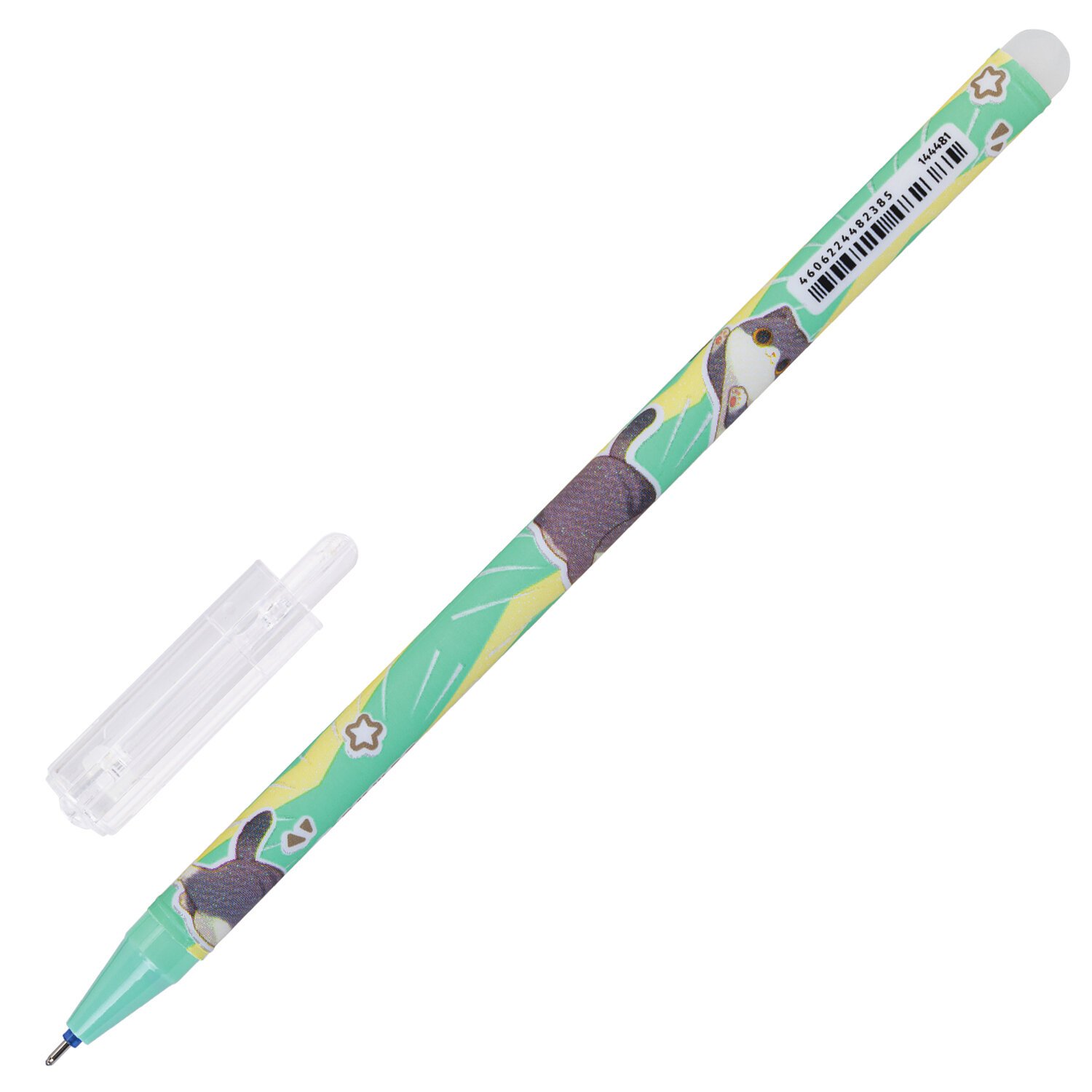 Ручка стираемая гелевая с принтом FUNSTER "КОТ-ЭНТУЗИАСТ", СИНЯЯ, корпус ассорти, игольчатый наконечник 0,5 мм, линия 0,35 мм, 144414
