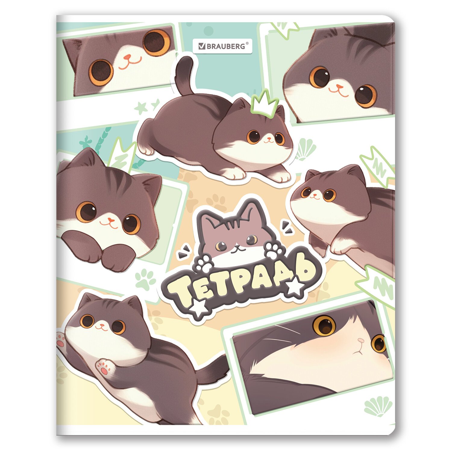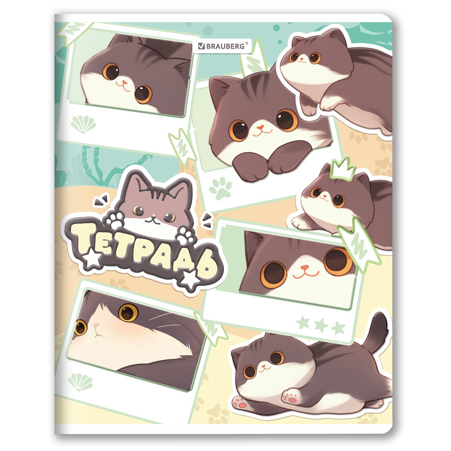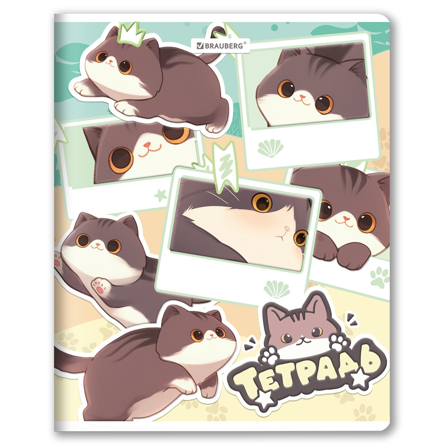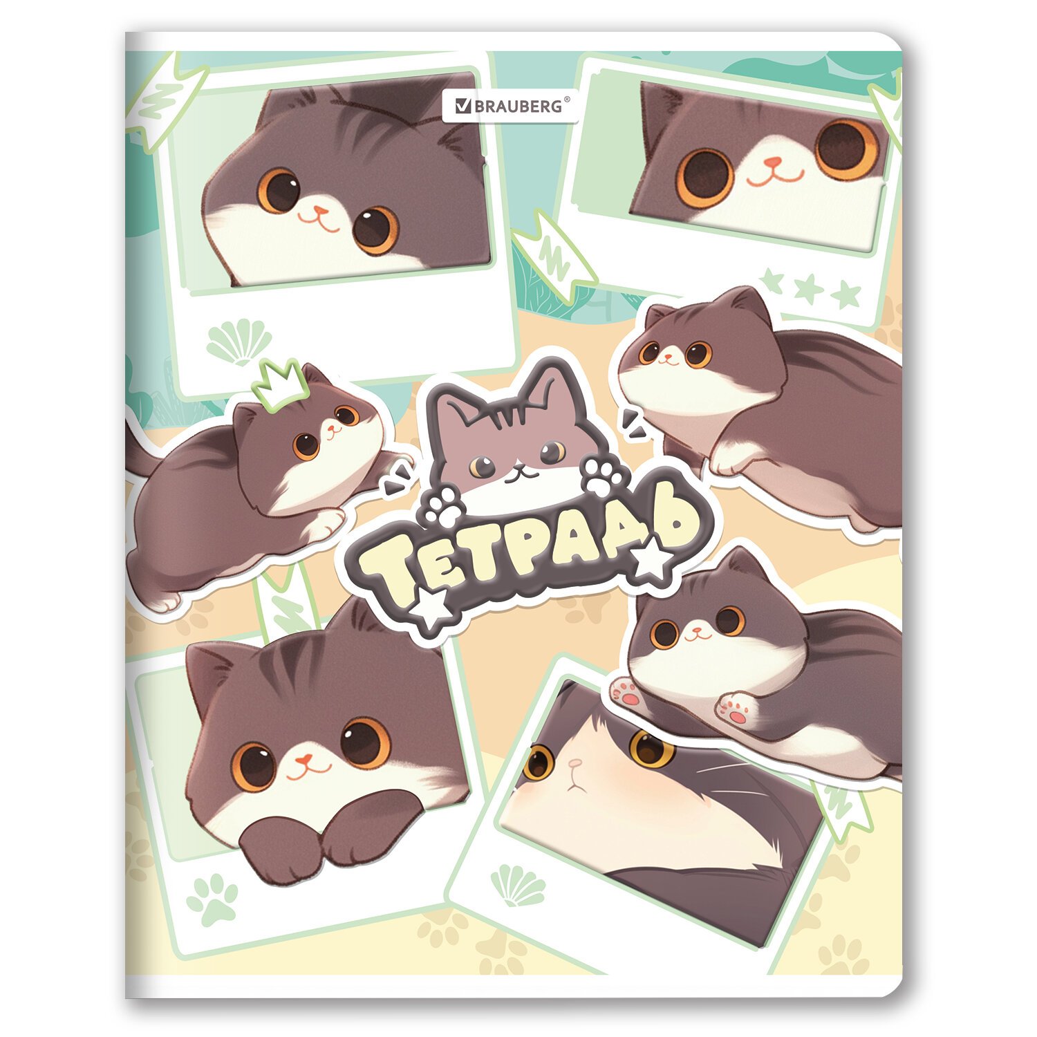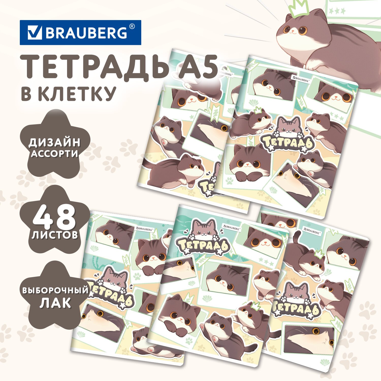 РЕЗЕРВ Тетрадь А5 48л. BRAUBERG МИЛЫЕ КОТЫ скоба, клетка, выборочный лак, 405193