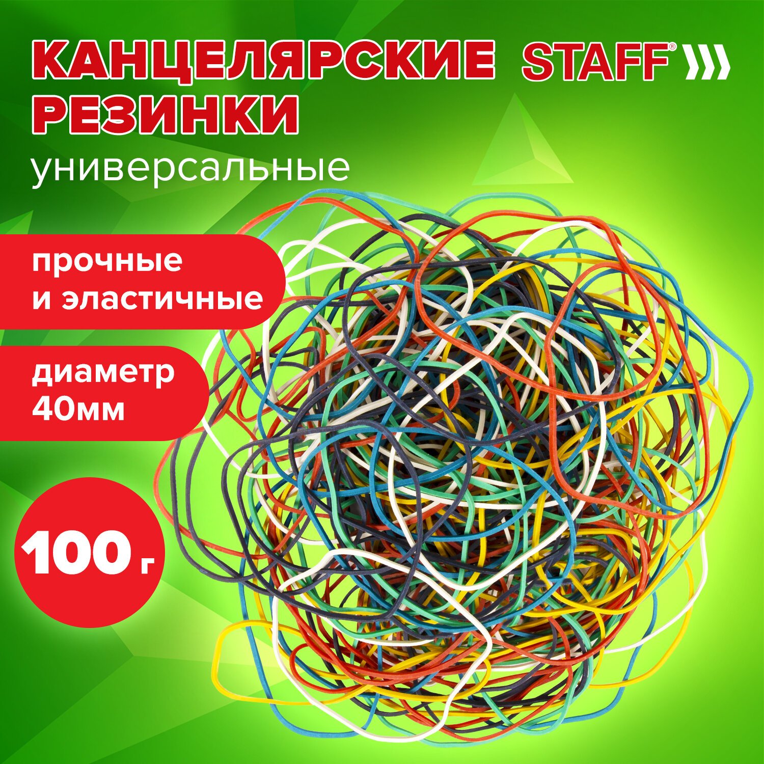 Резинки банковские универсальные диаметром 40 мм, STAFF 100 г, цветные, натуральный каучук, 440163