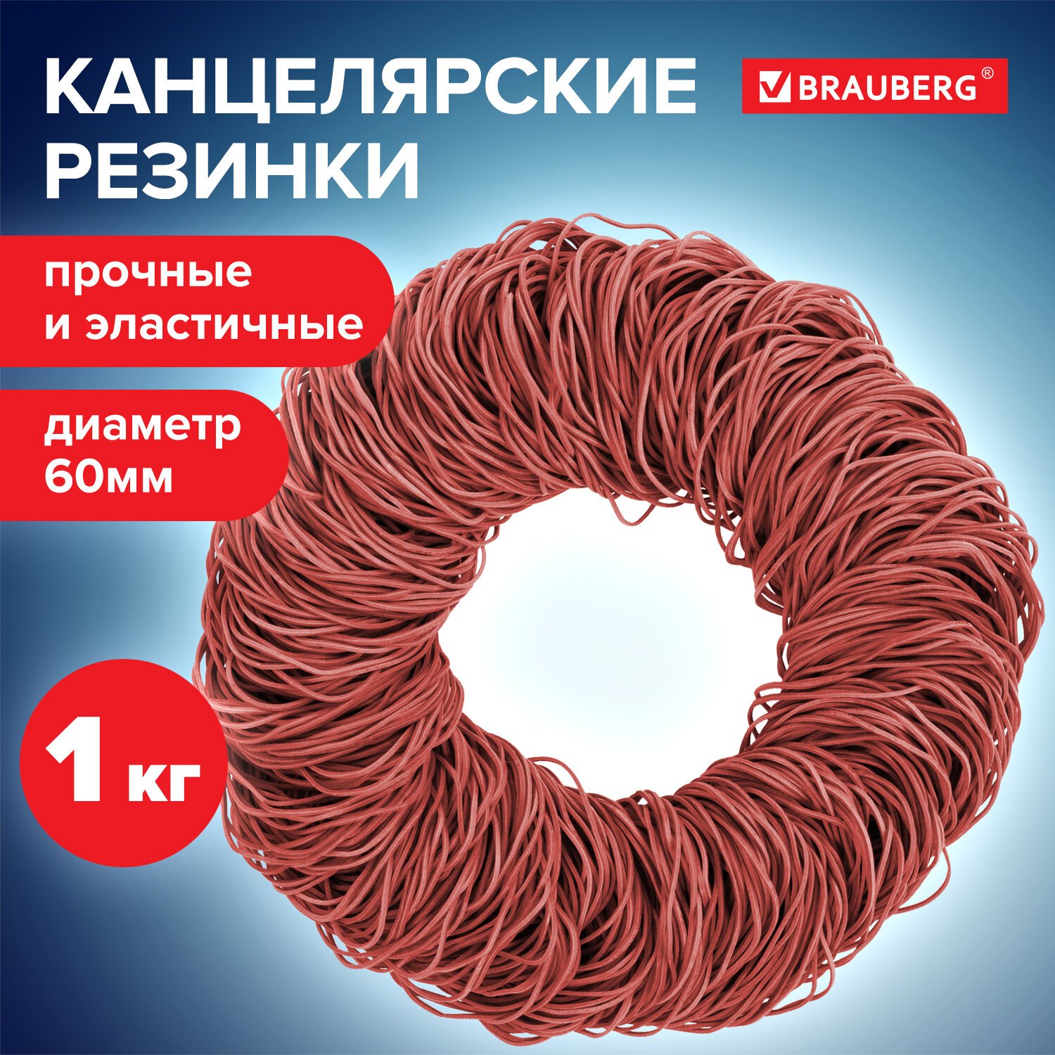 Резинки банковские универсальные диаметром 60 мм, BRAUBERG 1000 г, красные, натуральный каучук, 440101