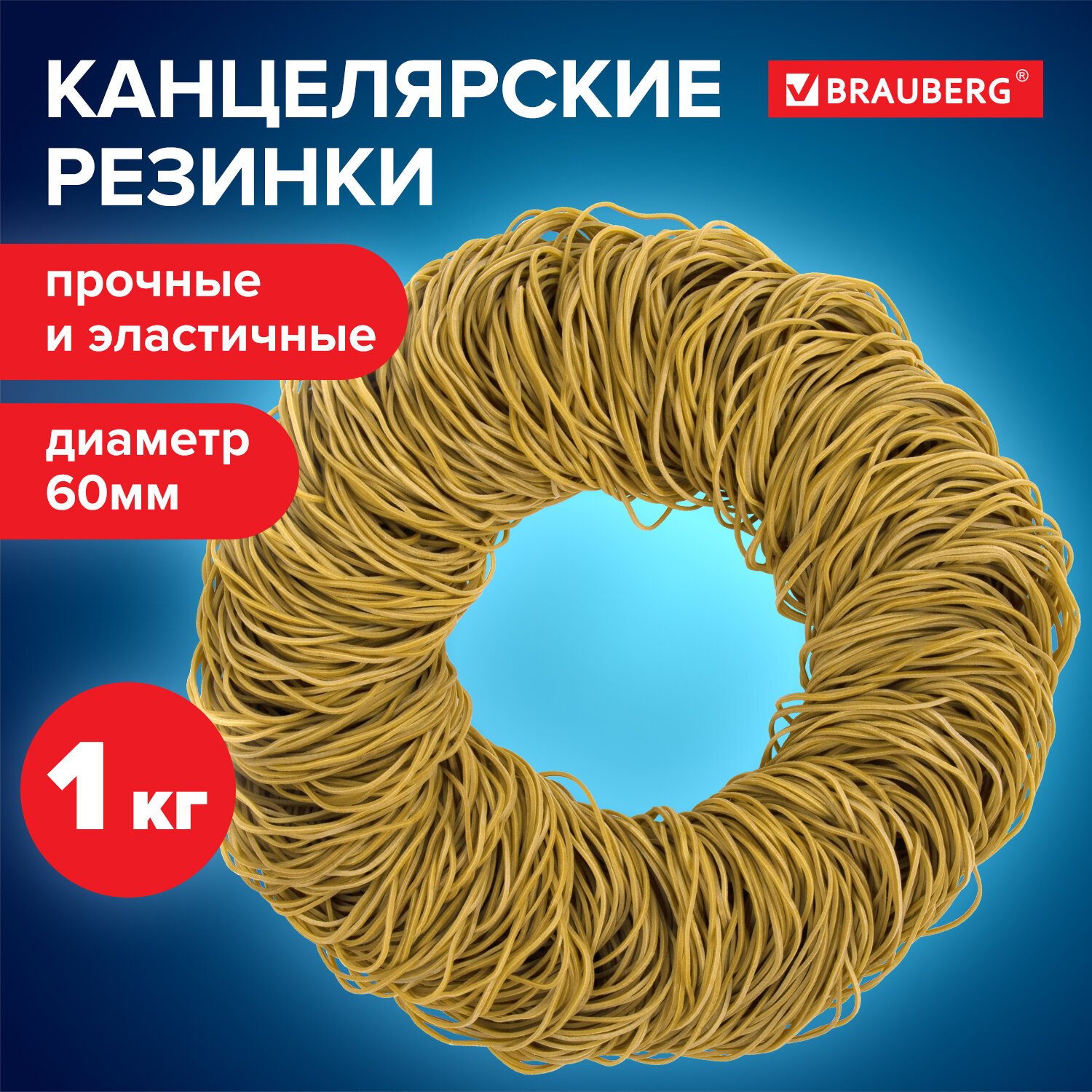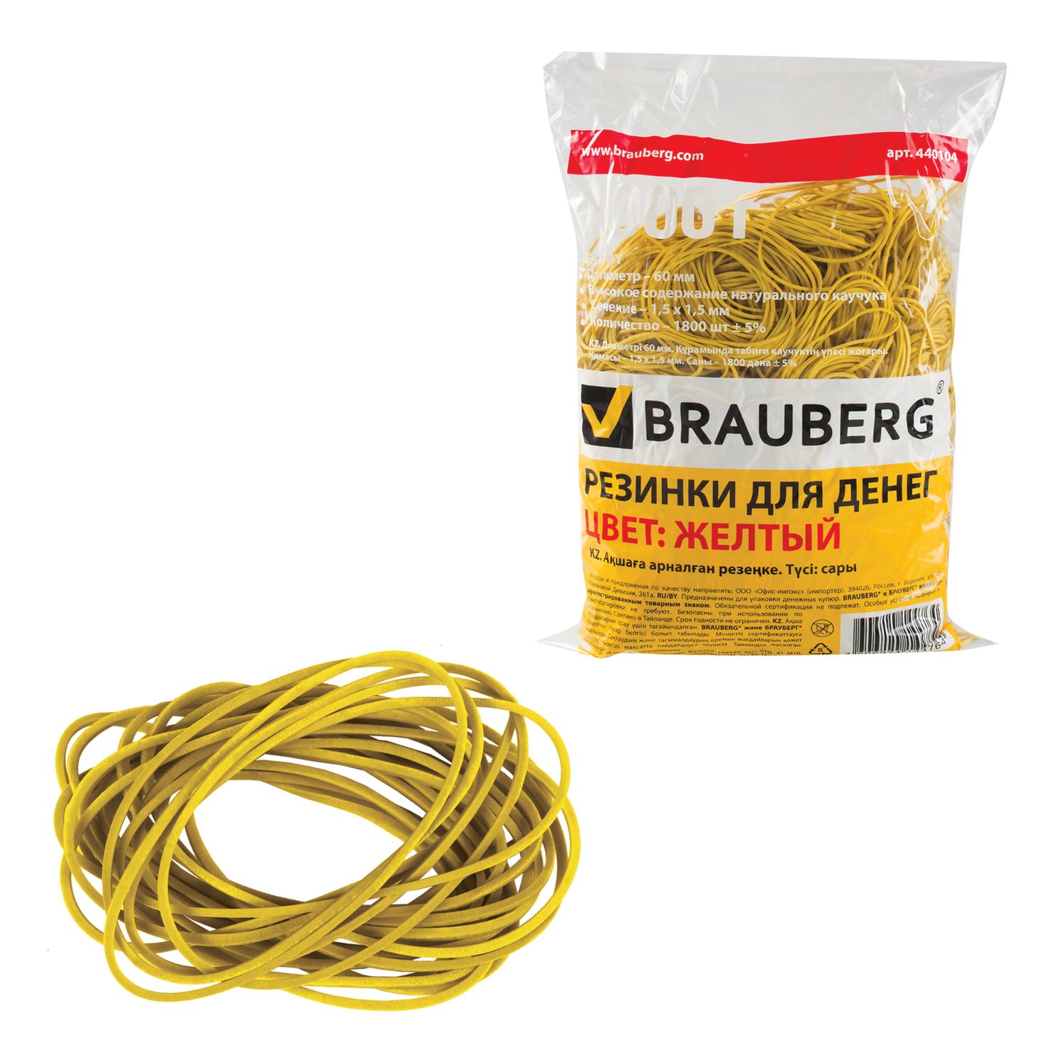 Резинки банковские универсальные диаметром 60 мм, BRAUBERG 1000 г, желтые, натуральный каучук, 440104