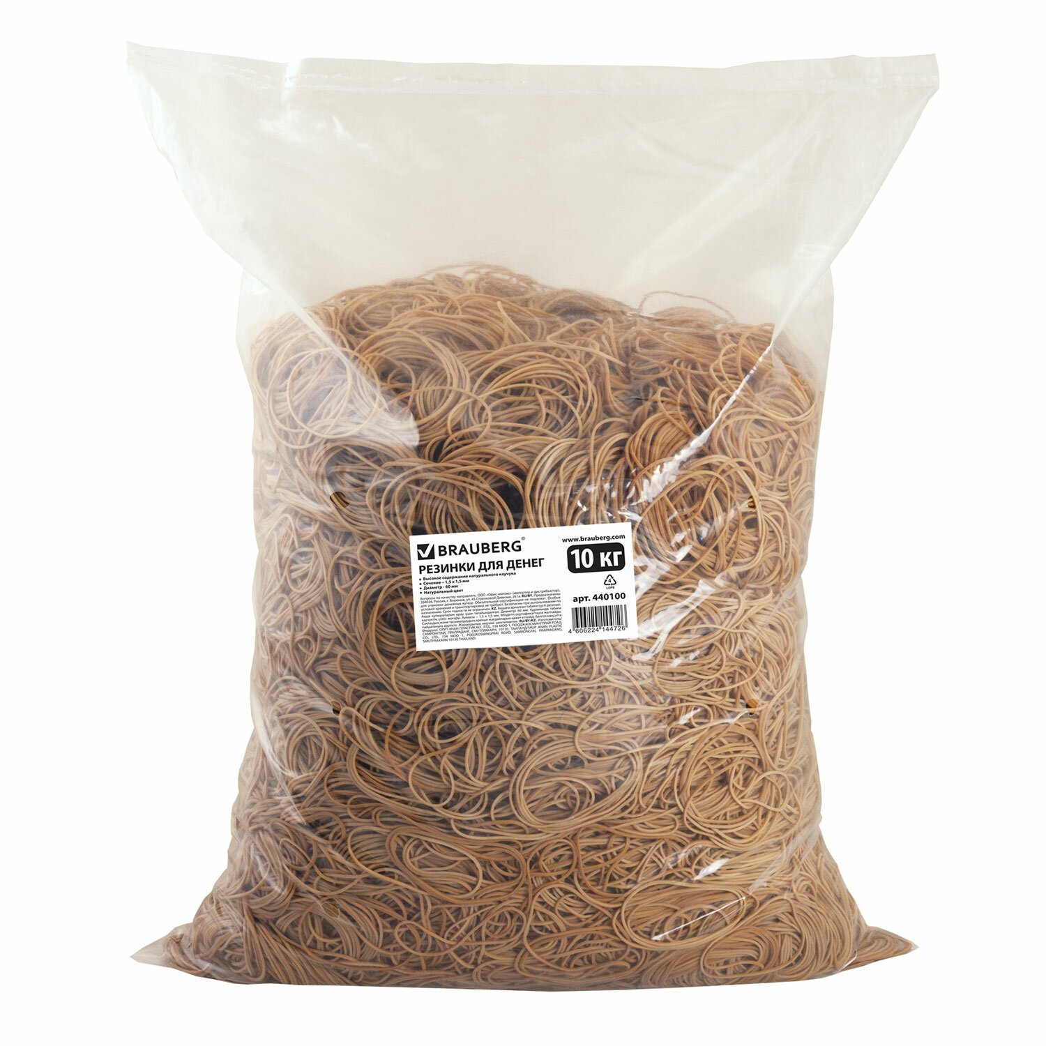 Резинки банковские универсальные диаметром 60 мм, BRAUBERG 10 кг, натуральный цвет, натуральный каучук, 440100