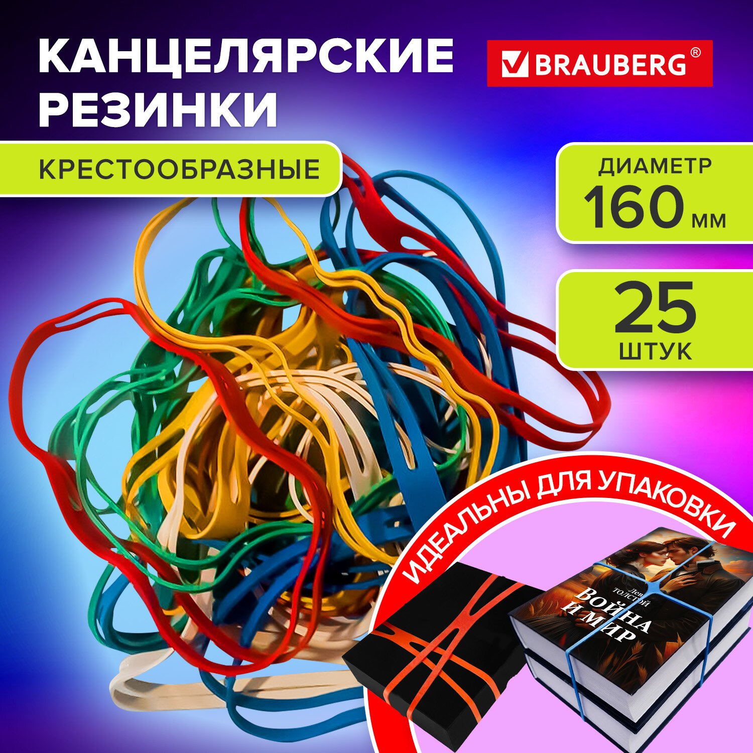 Резинки КРЕСТООБРАЗНЫЕ упаковочные, диаметр 160 мм, 25 шт., цветные, каучук, BRAUBERG, 440195
