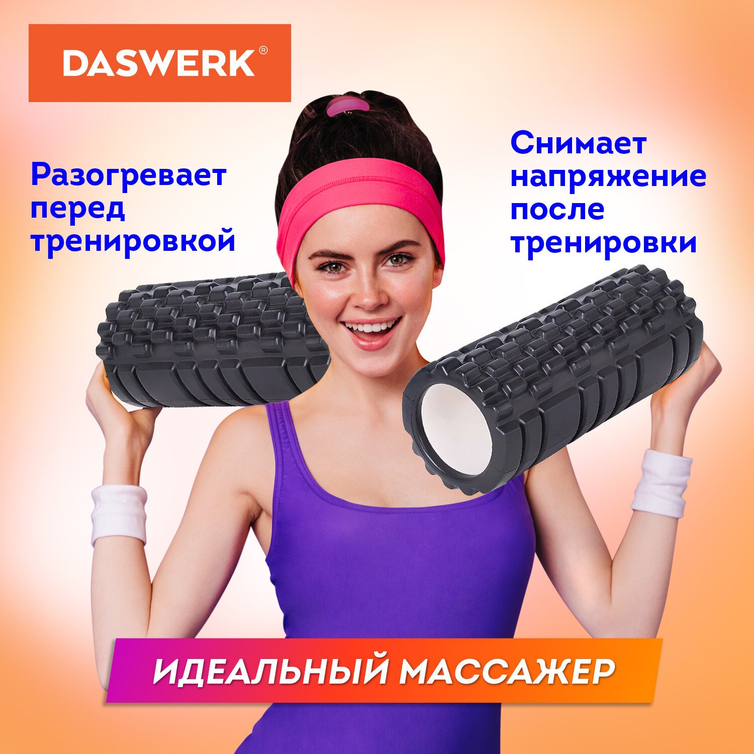 Ролик массажный для йоги и фитнеса 26х8 см, EVA, черный, с выступами, DASWERK, 680021