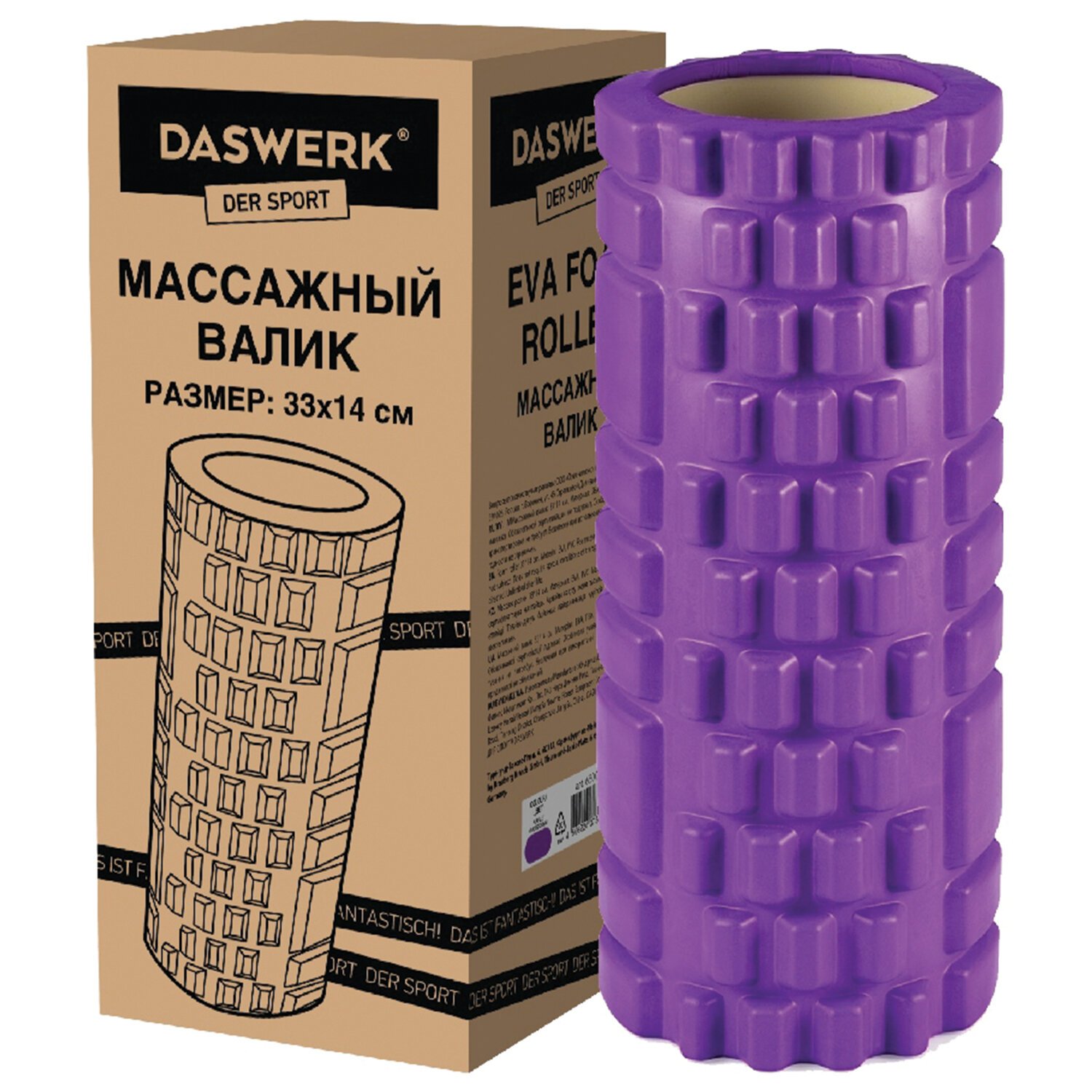 Ролик массажный для йоги и фитнеса, 33х14 см, EVA, фиолетовый, с выступами, DASWERK, 680023