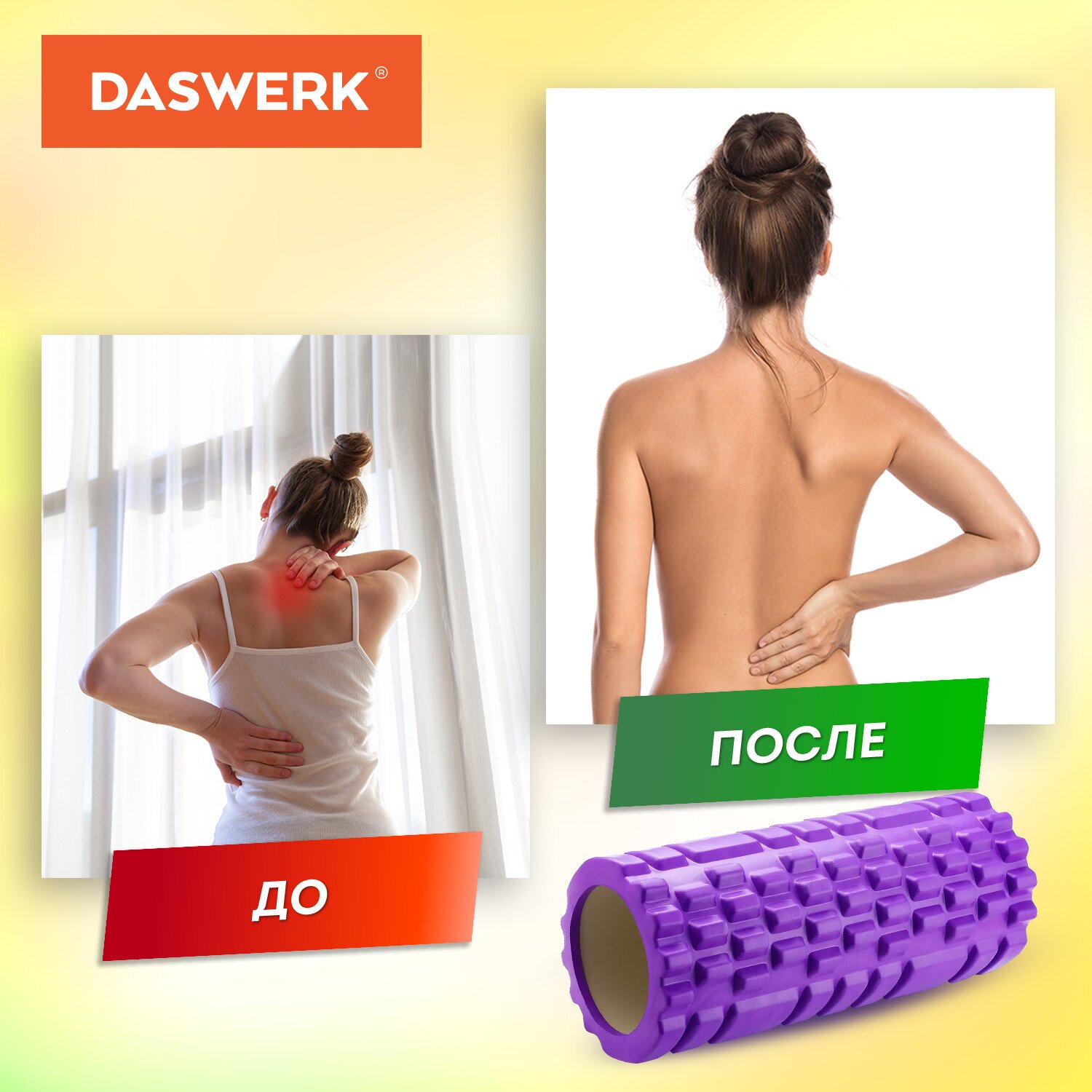 Материал ролика - EVA-пена, достаточно плотная, и в то же время мягкая, не проминается в результате использования. Этот безопасный, гигиеничный, износостойкий снаряд будет служить долгое время, избавляя от боли и напряжения в мышцах всего за несколько минут в день!